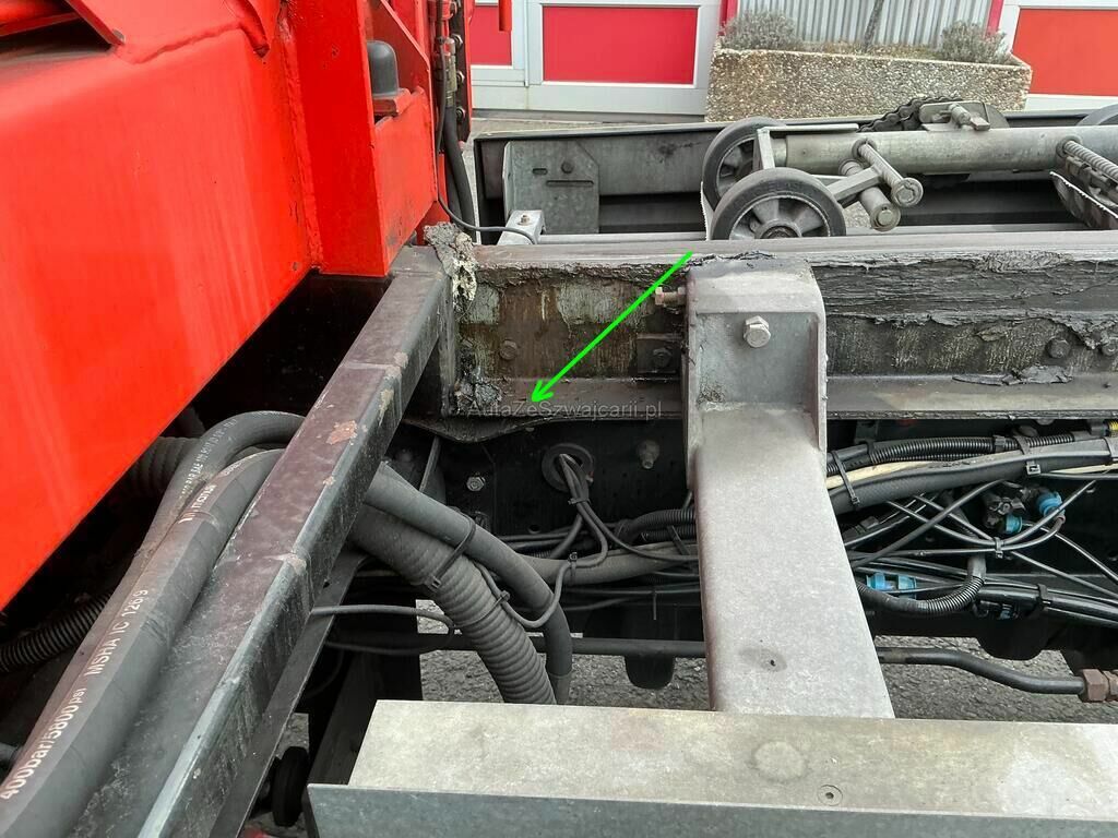 Châssis fortement plié au niveau de la grue.