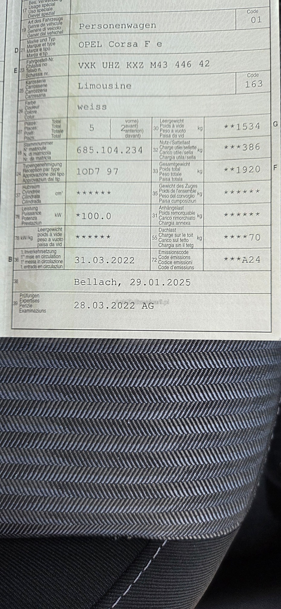 | Kommentar | Bei diesem Fahrzeug wurde kein Eintauschtest gemacht. Fahrzeug in gutem Zustand keine sichtbaren Mängel. |