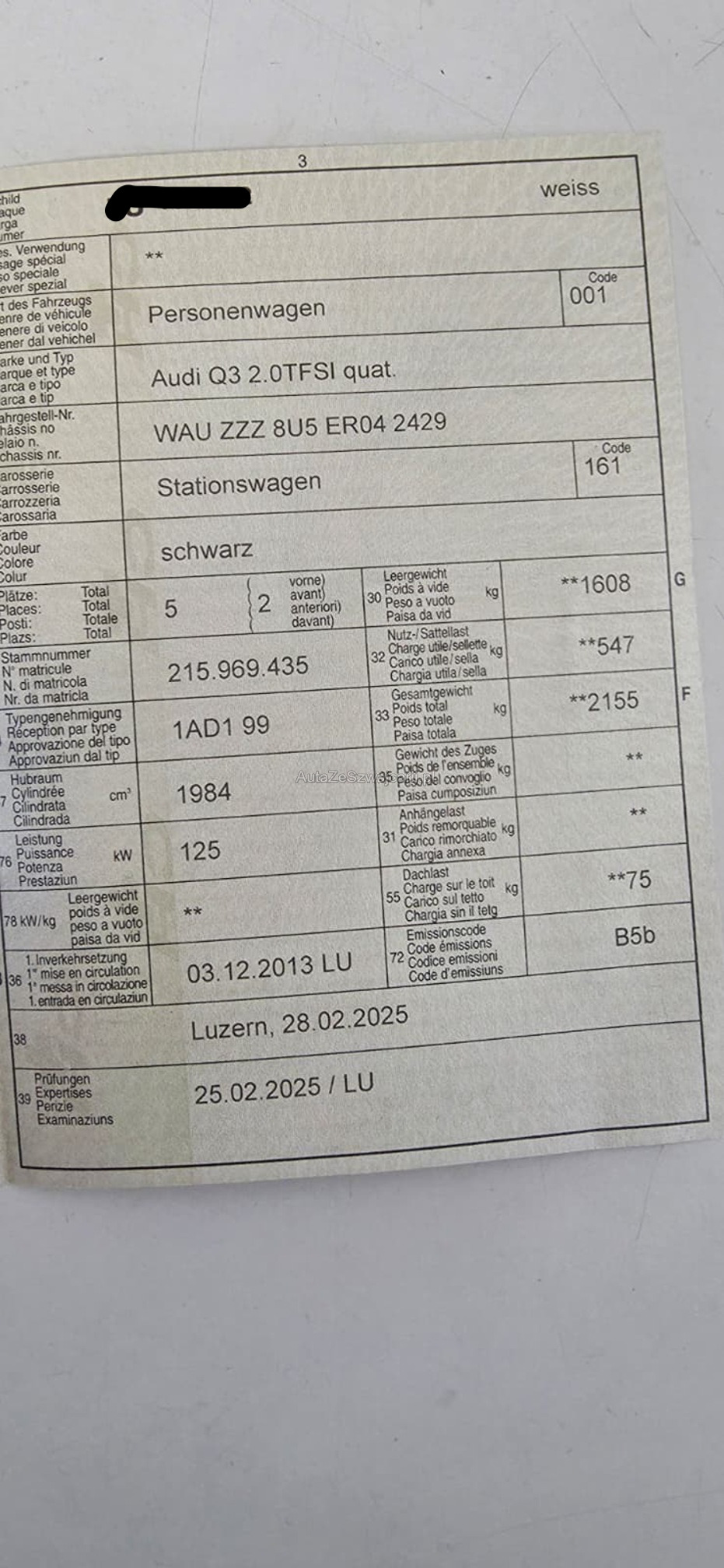 | Kommentar | Teilweise leuchtet Motorchecklampe auf und löscht wieder. Getriebe kratzt von 2. in 3. Gang wenn kalt. Fahrzeug befindet sich noch im Kundenbesitz. Diverse Schäden an der Karrosserie. Wir testen & kontrollieren nicht alle Funktionen vom Fahrzeug. Das Risiko liegt somit vollumfänglich beim Käufer. Nachdem der Höchstbietende den Zuschlag erhalten hat, gibt es keine Nachverhandlung, auch wenn nicht deklarierte Mängel zum Vorschein kommen sollten. Ab Platz ohne Garantie, Wandelung und Minderung werden wegbedungen. |