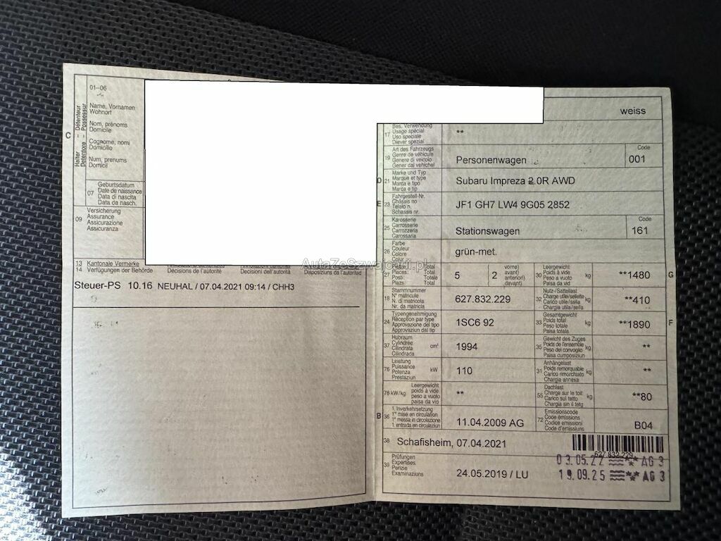 | Typ | Impreza Wagon 2.0 R Comfort |