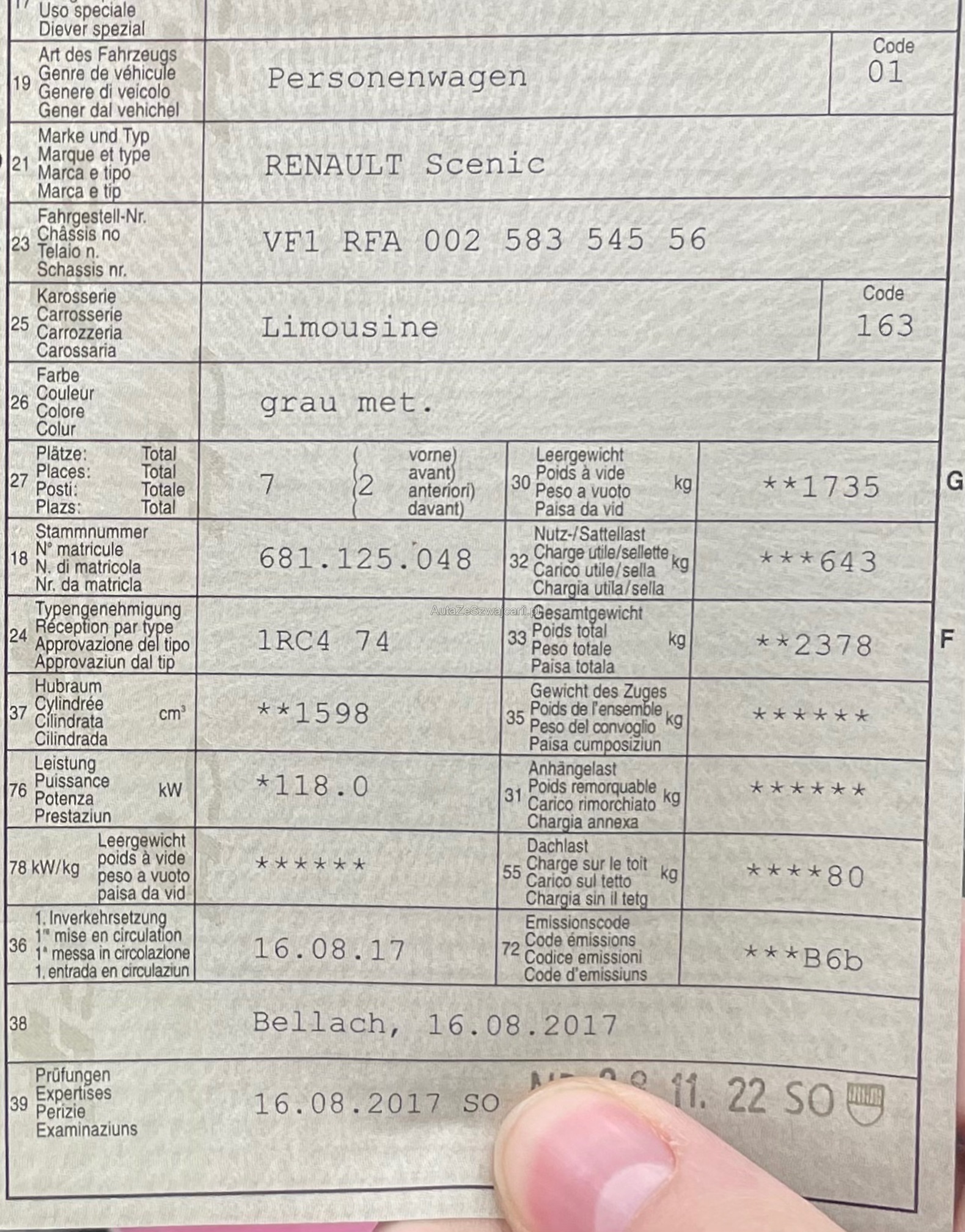 | Kommentar | Fahrzeug ab Platz, jede Gewährleistung wird wegbedungen, insbesondere sind Wandelung und Minderung ausgeschlossen. Eine Garantie wird nicht gewährt. |