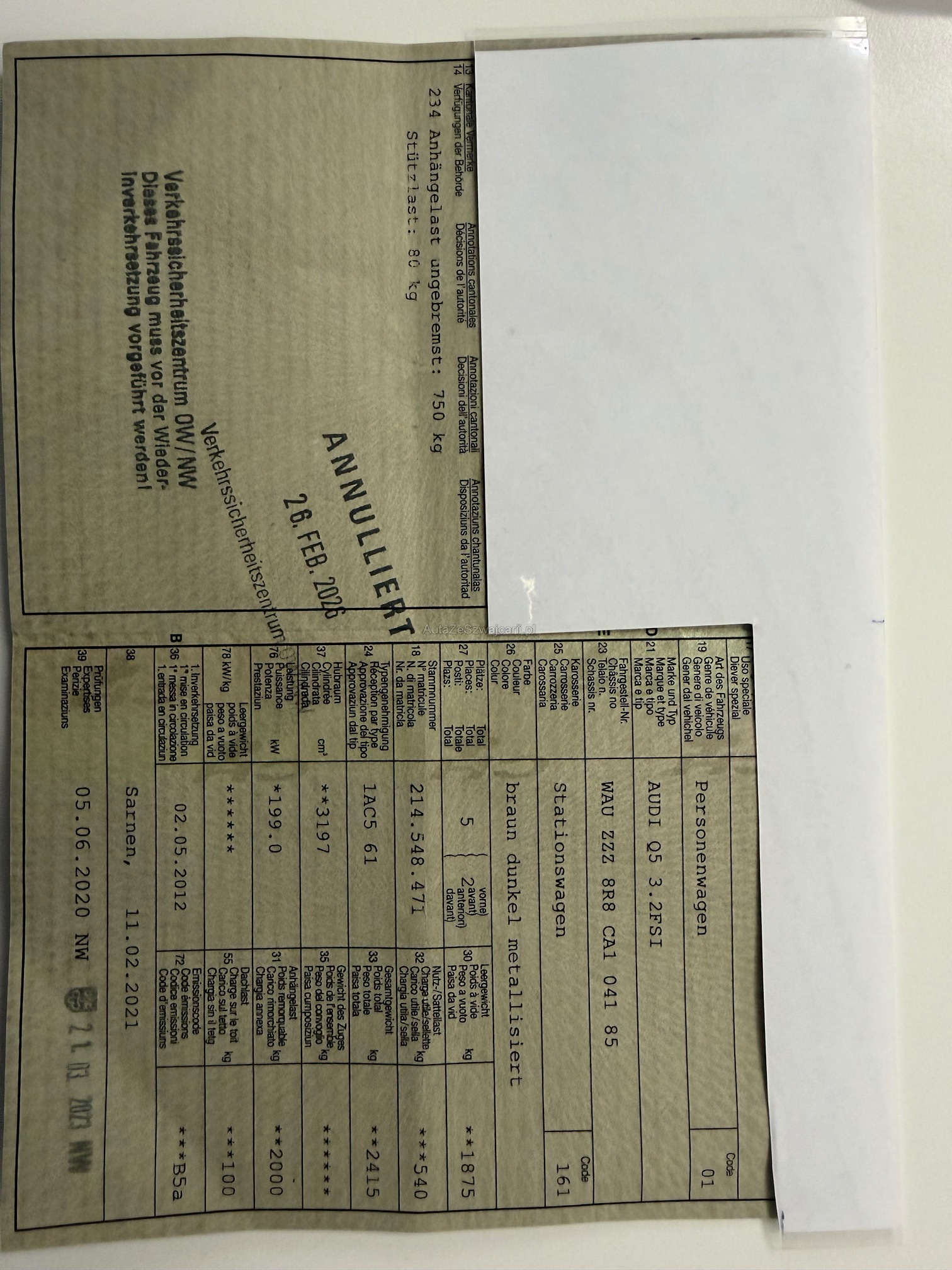 | Kommentar | Fahrzeug ab Platz ohne Garantie. Technische Mängel durch MFK festgestellt. (Foto) Ansonsten keine technische Prüfung gemacht. Ein Sommerpneu defekt. Kofferraumrollo fehlt. Jede Gewährleistung soweit nach Gesetz möglich wird wegbedungen, insbesondere Wandelung und Minderung. Fahrzeug muss nach 5 Arbeitstagen abgeholt werden. Standplatzgebühren 20.-/Tag |