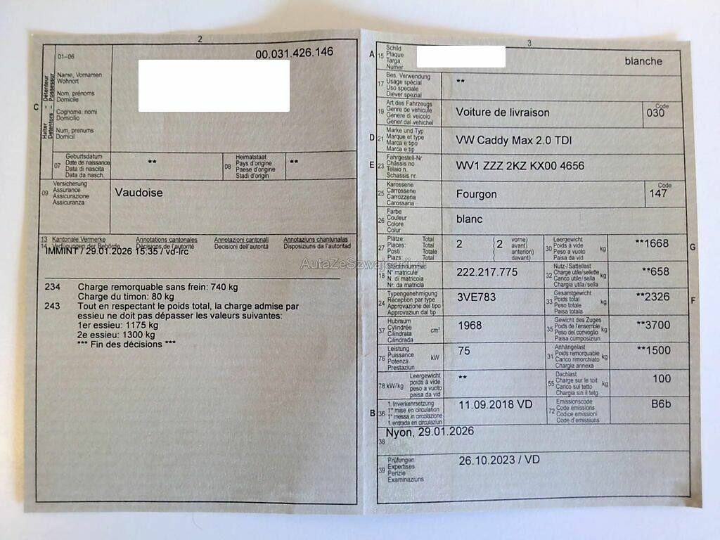 | Typ | Caddy Maxi fourg. 2.0 TDI 102 BlueMT DSG |