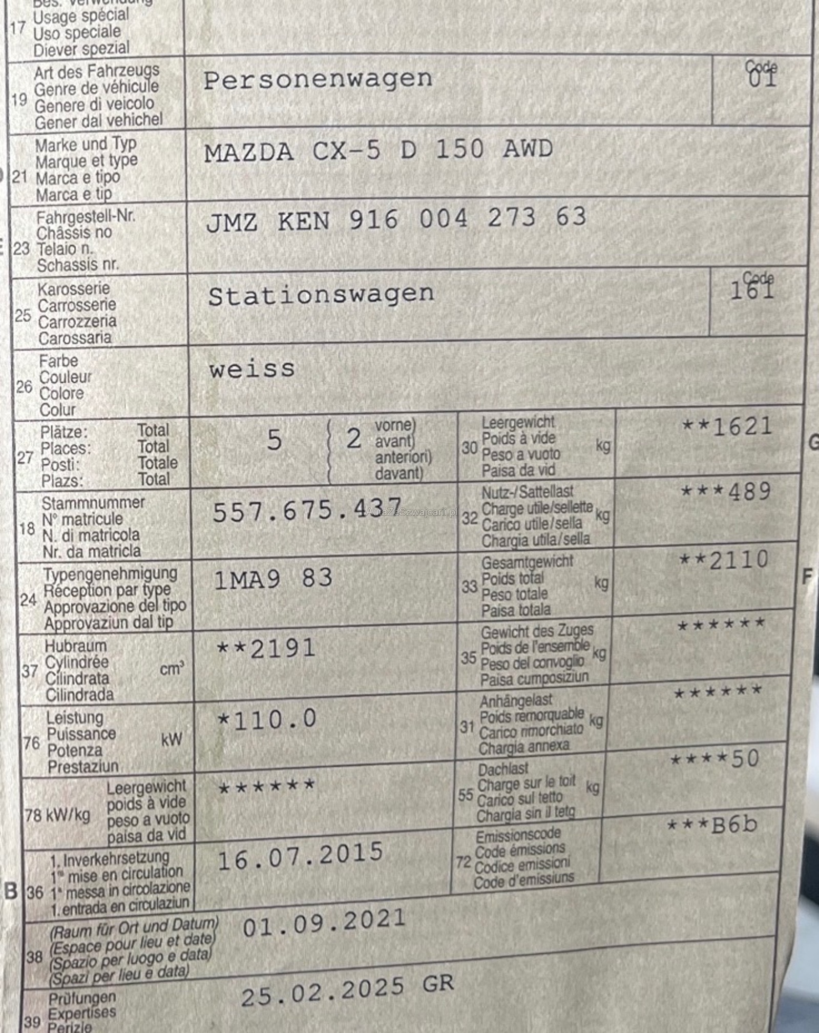 | Kommentar | Im Kundenauftrag zu verkaufen - Frisch ab Service 02.2026 - Diverse Karosserieschäden (sieh Foto) Das Fahrzeug muss innerhalb von 7 Tagen nach Auktionsschluss abgeholt werden. Fahrzeug wird ab Platz ohne Garantie verkauft. Jede Gewährleistung, soweit nach Gesetz möglich, wird wegbedungen, insbesondere sind Wandelung und Minderung ausgeschlossen. |