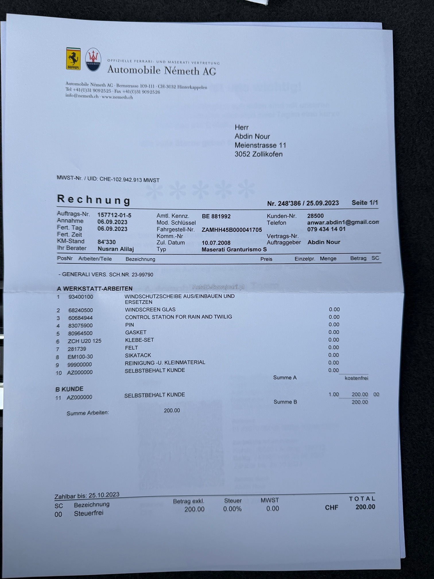 | VIN | ZAMXXX |
