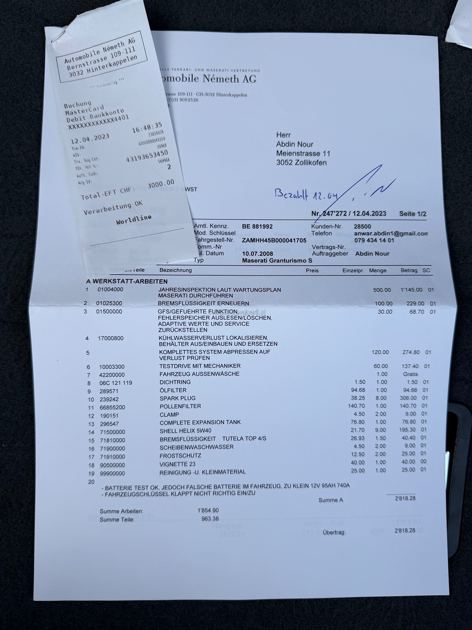| Kommentar | Service fällig, kleine Beule rechte Tür (kann gedrückt werden), Mittelkonsole hinten hat einen kleinen Riss, sonst sehr gepflegt. |