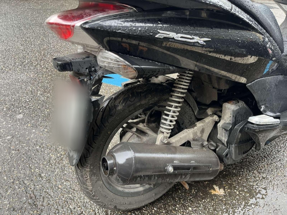 | Schadensbeschreibung | Choc arrière et chute côté droit : Pare-boue arrière, support de plaque et roulement de roue arrière endommagés et cassés. Pare-chaleur échappement, échappement, bas de caisse droit, repose pied, carénage avant droit, levier de frein, rétroviseur râpés. / Dommage préexistant, chute côté gauche : Rétroviseur, levier de frein, carénage avant gauche, bas de caisse, repose pied, carter variateur boite à air, béquille râpés. |