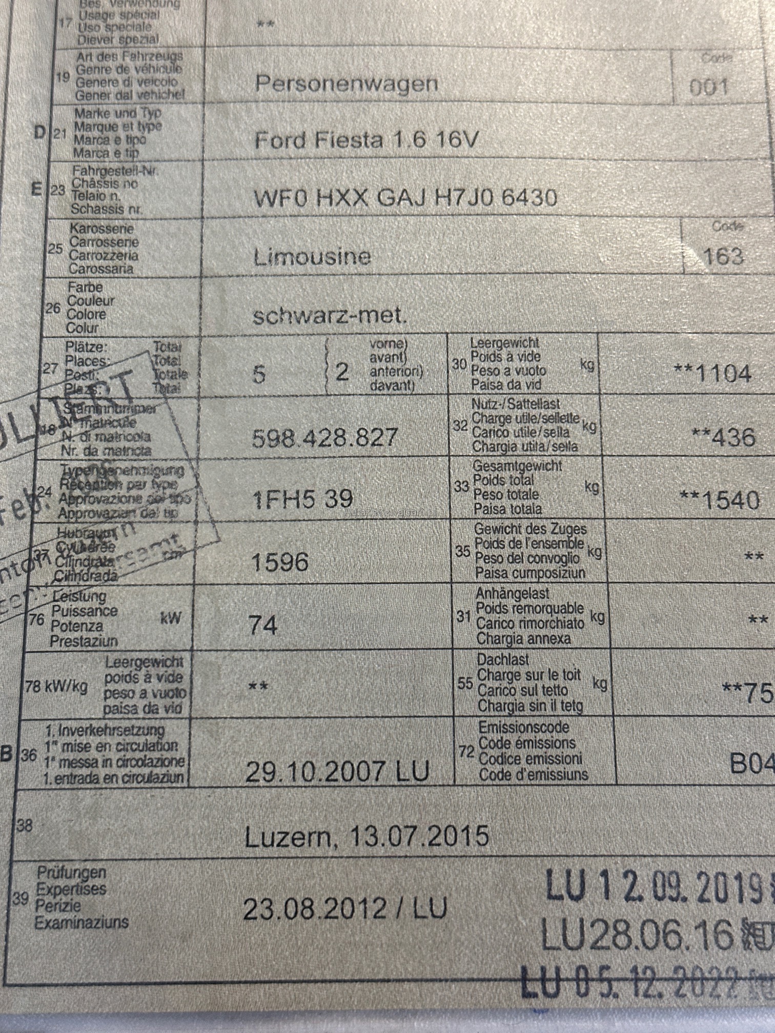 | VIN | WF0XXX |