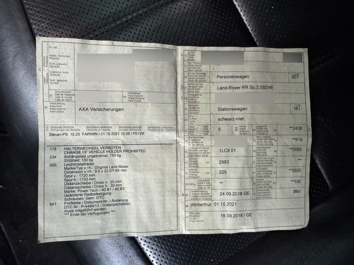 | Fahrzeugausweis | Vorhanden |