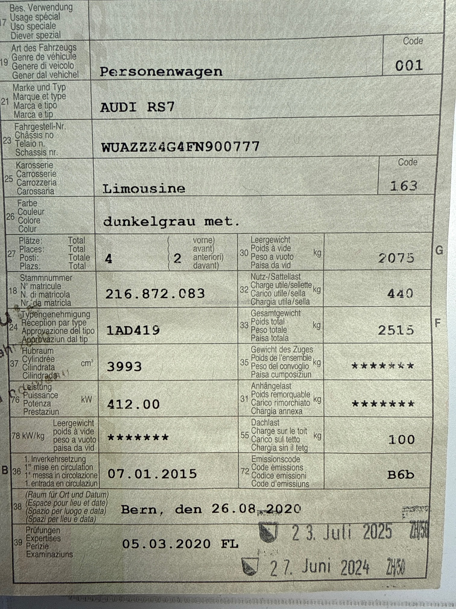 | Kommentar | Am Fahrzeug wurde kein Werkstatttest gemacht (Für sichtbare oder nicht sichtbare Mängel wird nicht gehaftet). Wir testen & kontrollieren nicht alle Funktionen vom Fahrzeug. Das Risiko liegt somit vollumfänglich beim Käufer. Nachdem der Höchstbietende den Zuschlag erhalten hat, gibt es keine Nachverhandlung, auch wenn nicht deklarierte Mängel zum Vorschein kommen sollten. Ab Platz ohne Garantie, Wandelung und Minderung werden wegbedungen. |