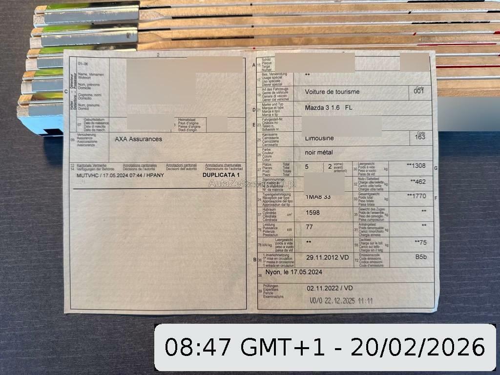 | Fahrzeugausweis | Vorhanden |
