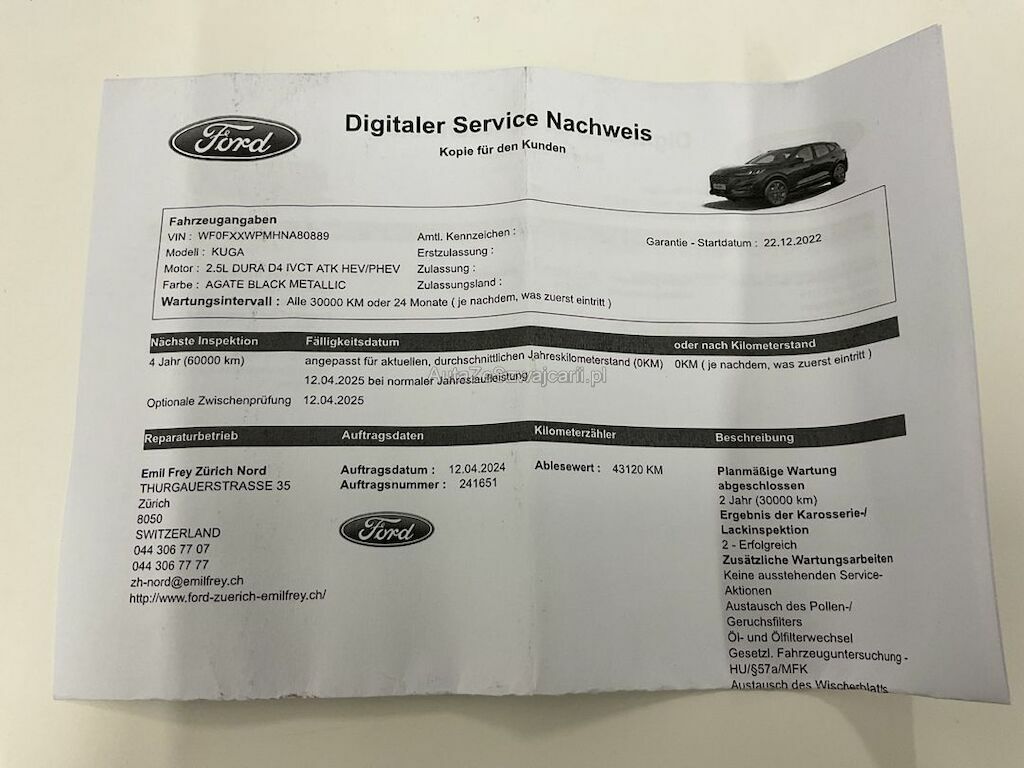 | Typ | Kuga 2.5 Plug-in Hybrid ST |