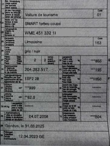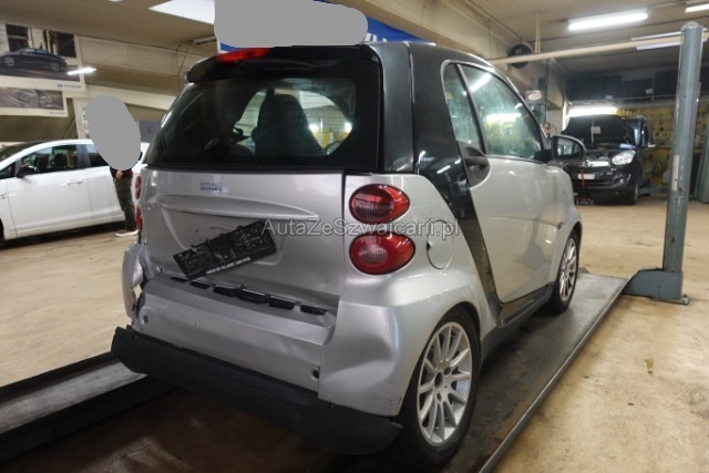 | Condition_and_Equipment | Verkauf Der Verkauf erfolgt durch den Halter in Zusammenarbeit mit der Firma TeamConsulting, nicht durch die XpertCenter AG. Das Fahrzeug muss bei Abholung bar vor Ort bezahlt werden. Zusätzlich zum Gebot fällt eine Handlinggebühr an. Schlüssel Nur ein Schlüssel vorhanden. Weitere wichtige Hinweise Auspuff beschädigt (starker Lärm), Gefahr eines Motorschadens. Zug vorne beschädigt --- Heck Heck eingedrückt. Heckblech eingedrückt. Kofferboden eingedrückt. Heckklappe eingedrückt. Motor Risiko Motor. Achse Hinterachse rechts beschädigt. --- Serienaustattung Airbag Fahrer und Beifahrerseite Elektronische Wegfahrsperre Elektrische Fensterheber ESP Elektronisches Stabilitätsprogramm Panoramadach Zentralverriegelung mit Fernbedienung Gepäckraumabdeckung Lederschaltknauf Automatisches Schaltprogramm ABS und EBV Elektr. Bremskraftverteilung inkl. BA Aussentemperaturanzeige mit Frostwarnung Sonnenschutz für Glasdach Sicherheitszelle Tridion/ metallic silver Lederlenkrad 2-Speichen Klimaanlage geregelt/ Staub und Pollenfiter Leichtmetallräder 15" 12-Speichen R72 Keine Gewähr auf die Angaben der Serienausstattungen Sonderausstattung Aussenspiegel elektrisch verstellbar und heizbar Servolenkung elektrisch Sport-Lederlenkrad 3-Sp. mit Lenkradschaltung Smart Radio Nine/ CD/ 2 Lautsprecher Smart Soundsystem inkl. Subwoofer Pack Audio Pack Komfort/ Licht Handschuhfach abschliessbar Metallic-Lackierung/ Bodypanel Silver |