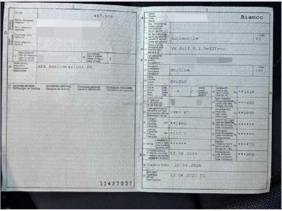 | Fahrzeugausweis | Vorhanden |