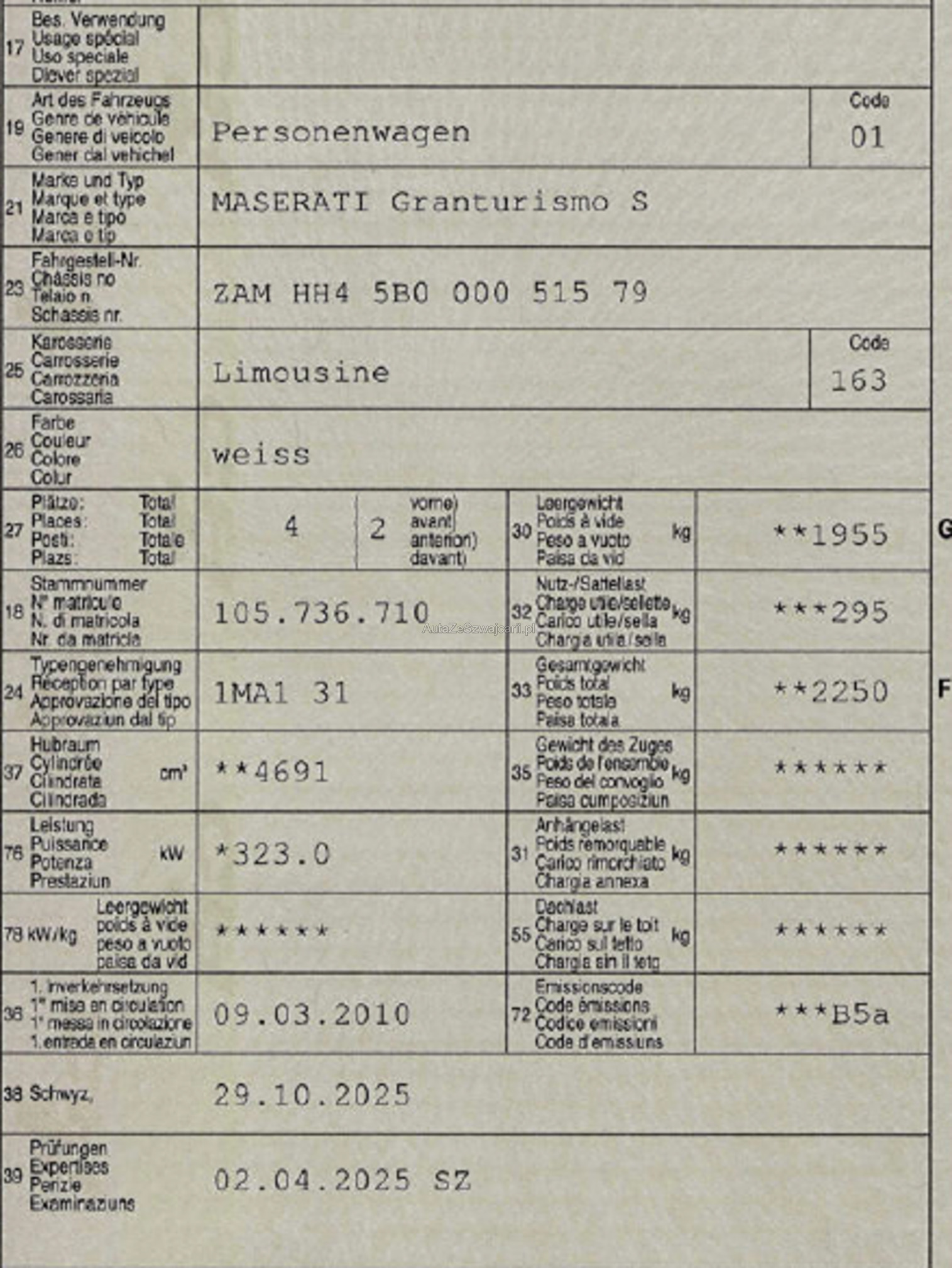 | Kommentar | Wichtig der MASERATI GranTurismo S Cambiocorsa ist und nicht der Automtica. Ebenso ist das Carbon und der Alcantara-Himmel im Innenraum einen kleinen + Punkt Fahrzeug ist Foliert |