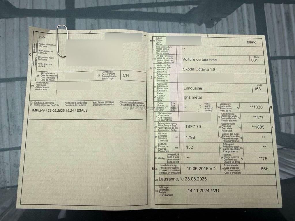 | Fahrzeugausweis | Vorhanden |