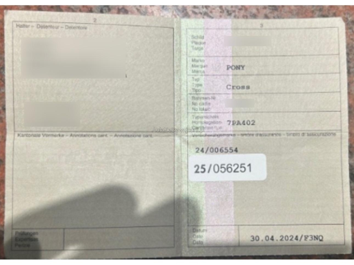 | Fahrzeugausweis | Vorhanden |