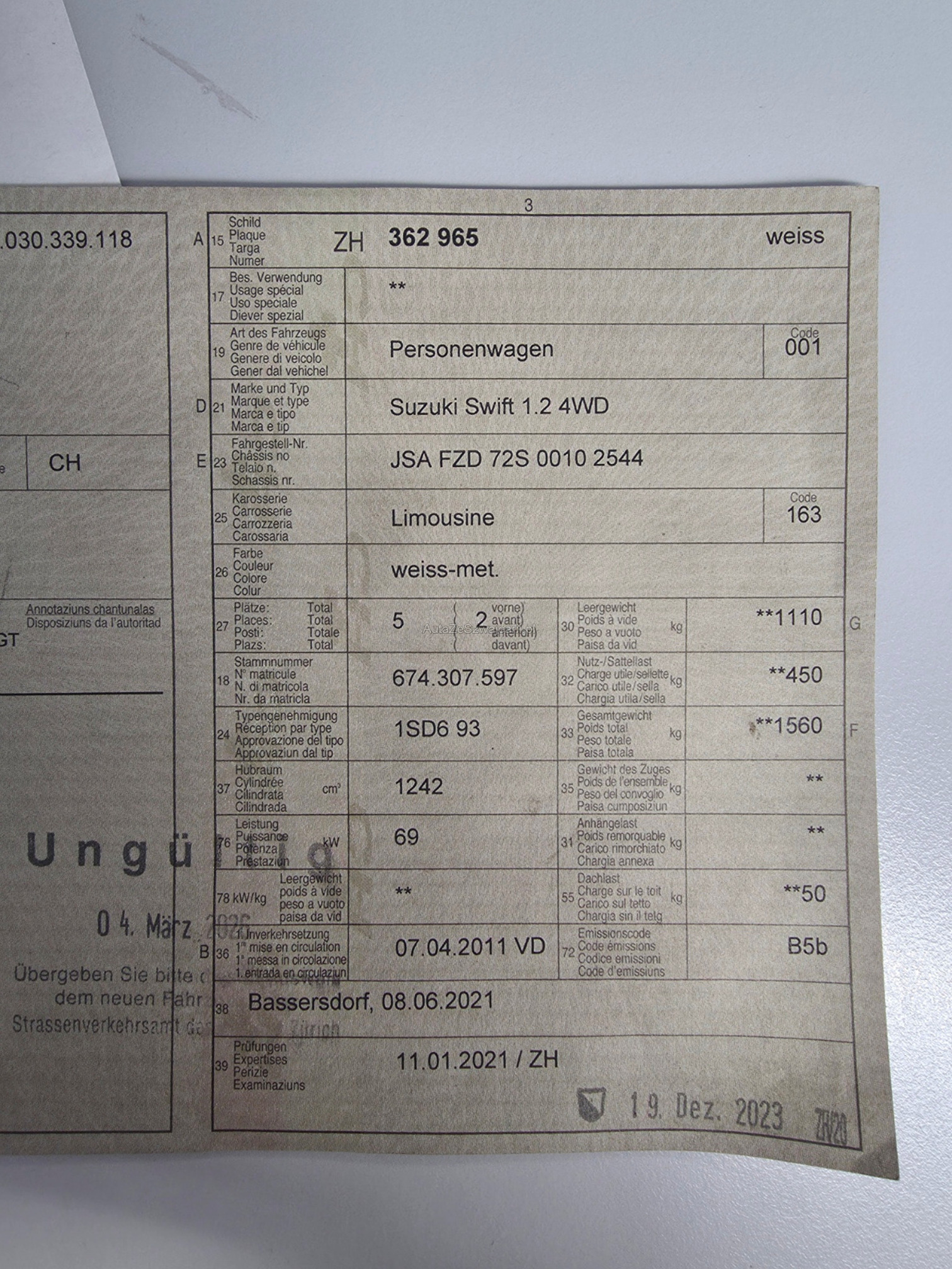 | Kommentar | Kein Werkstattest durchgeführt. Bremsen hinten zu ersetzen. Lack hat diverse Klarlackschäden (siehe Fotos). Fahrzeug muss inert 3 Tagen nach Zuschlag abgeholt und Bar bezahlt werden. Keine Nachverhandlungen nach Auktionsende. |