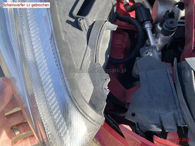 | Schadensbeschreibung | Beschreibung der Schäden: Stossstange und diverse Anbauteile beschädigt, Fehler PDC, Balken eingedrückt, Schlossträger gebrochen, div. Luftführungen gebrochen, beide Scheinwerfer gebrochen, Motorhaube eingedrückt, Kotflügel v.r leicht zerkratzt Zahnriemen/Wapu ersetzt 129'257km/28.06.2025 Vorschaden Stossstange h.r ausgerissen |