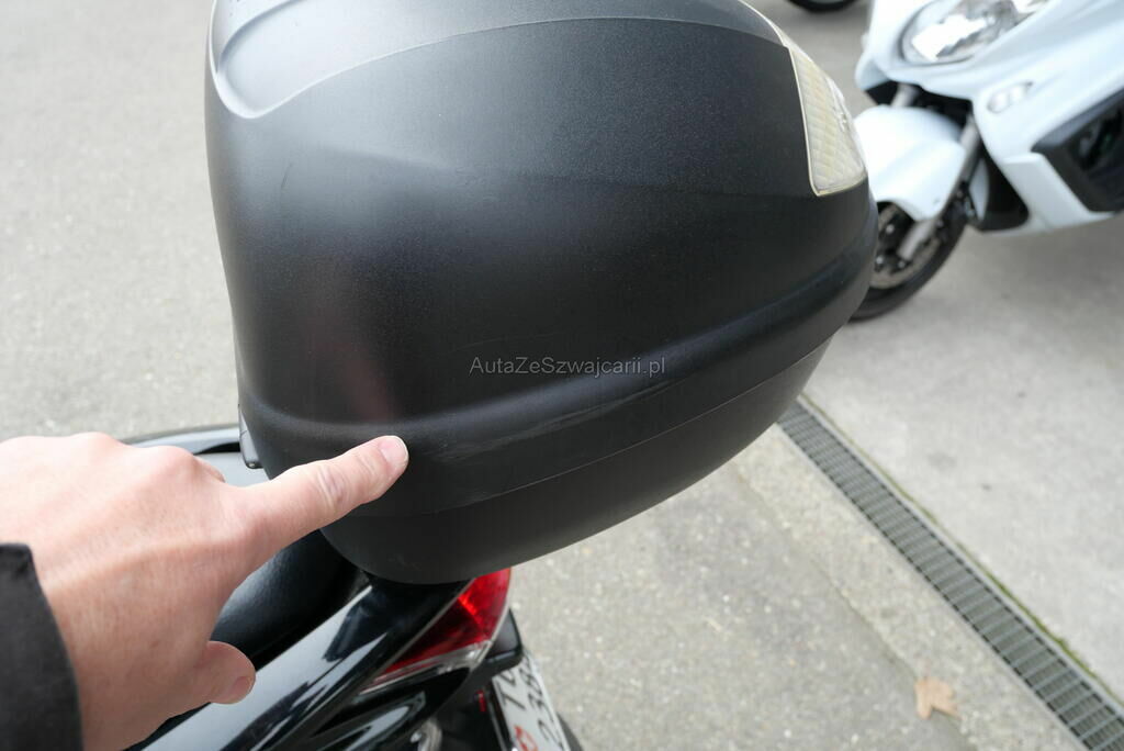 Windschild gebrochen, Schutzblech, Seitenverschalungsteile links, Spiegel und Hebel beidseits, Abdeckungen, Luftfilter und Motordeckel zerkratzt, Top Case beschädigt