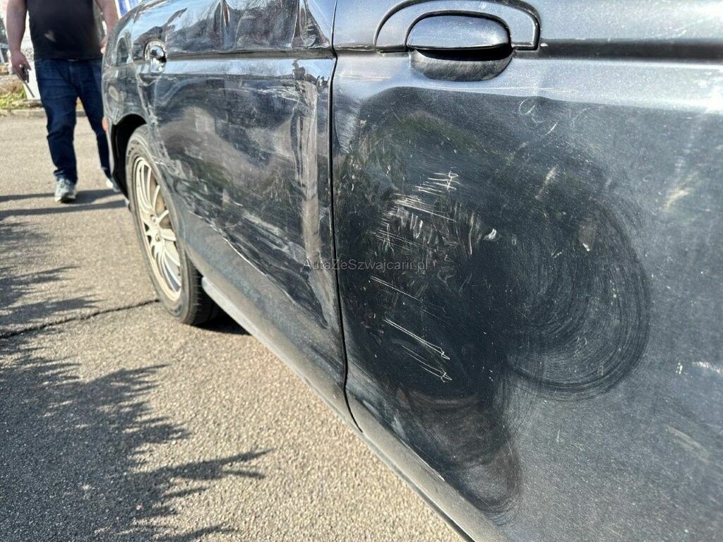 Die Tür vorne und hinten rechts sowie die Seitenwand hinten rechts sind deformiert.