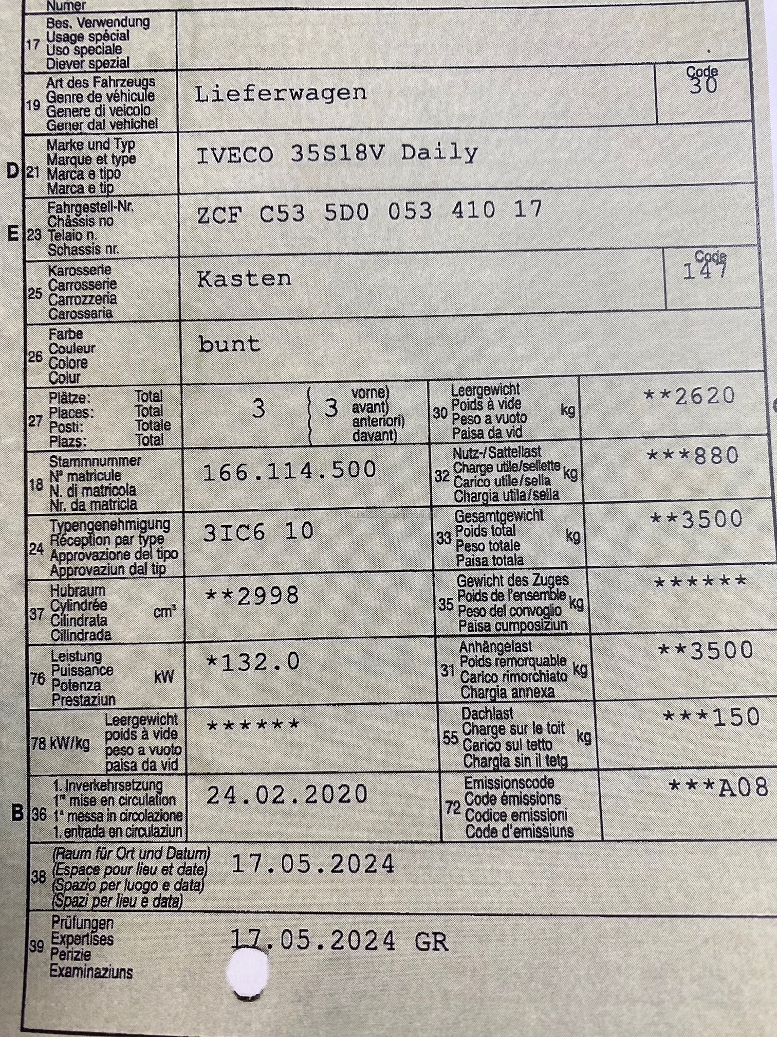 | Kommentar | Grosser Service im October durchgeführt |