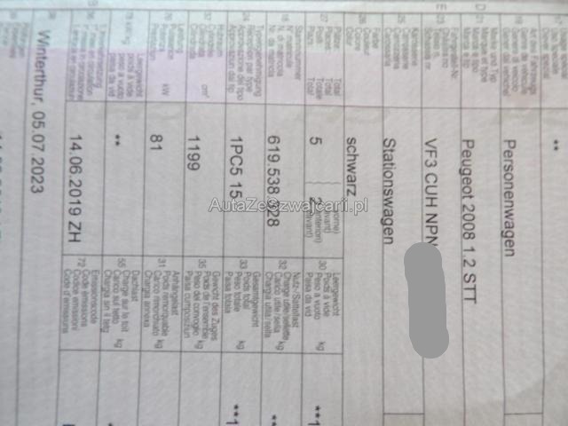 | Condition_and_Equipment | Zustand Fahrzeug muss transportiert werden (Höhe und Breite beachten). Fahrzeug ist NICHT fahrbar. Fahrzeug ist NICHT rollbar. Bereifung Fahrzeug wird mit Winterräder abgegeben. Schlüssel Nur ein Schlüssel vorhanden. --- Rechts Rechte Seite beschädigt. Tür vorne rechts ist eingedrückt. Front Front rechts eingedrückt. Kotflügel vorne rechts eingedrückt. Motorhaube eingedrückt. Radhaus vorne rechts eingedrückt / gestaucht. Achse Vorderachse ist beschädigt. Risiko Vorderachse. Risiko Lenkung. Innenraum Fahrerairbag ausgelöst. Beifahrerairbag ausgelöst. Armaturenbrett ist beschädigt. Gurtstraffer ausgelöst. Glas Windschutzscheibe ist gerissen. --- Serienaustattung Airbag Fahrer und Beifahrerseite Sportsitze Elektrische Fensterheber vorne Aussenspiegel elektrisch verstellbar und heizbar Bordcomputer Seitenairbag Fahrer und Beifahrerseite Zentralverriegelung mit Fernbedienung Lederlenkrad Lenkrad verstellbar Kopfairbag vorne und hinten Elektrische Fensterheber hinten ABS und EBV Elektr. Bremskraftverteilung Radio Leichtmetallfelgen 16" Deaktivierung Beifahrerairbag Aussenspiegel elektrisch anklappbar ESP/ ASR Isofix-Kindersitzbefestigung Not-Bremsassistent mit Aktivierung der Warnblinkanlage Zwei Zonen-Klimaautomatik Tempomat mit Geschwindigkeitsbegrenzer Servolenkung geschwindigkeitsabhängig Pack Sicht Höhenverstellbarer Fahrersitz Rücksitzlehne geteilt 1/3 oder 2/3 / umklappbar Reifendruck-Sensoren RDS Einparkhilfe hinten Touchscreen-Bildschirm Anschluss USB und AUX Fernbedienung am Lenkrad Stop + Start System LED Tagfahrlicht Hill Assist Bluetooth Freisprecheinrichtung Nebelscheinwerfer mit Abbiegelicht Keine Gewähr auf die Angaben der Serienausstattungen DAB+ Digital Audio Broadcast Pack Urbain Apple Car Play/ Android Auto Garantie 3 Jahre/ 80'000 km Ottopartikelfilter Sonderausstattung Metallic-Lackierung Panorama-Glasdach Pack Navigation |