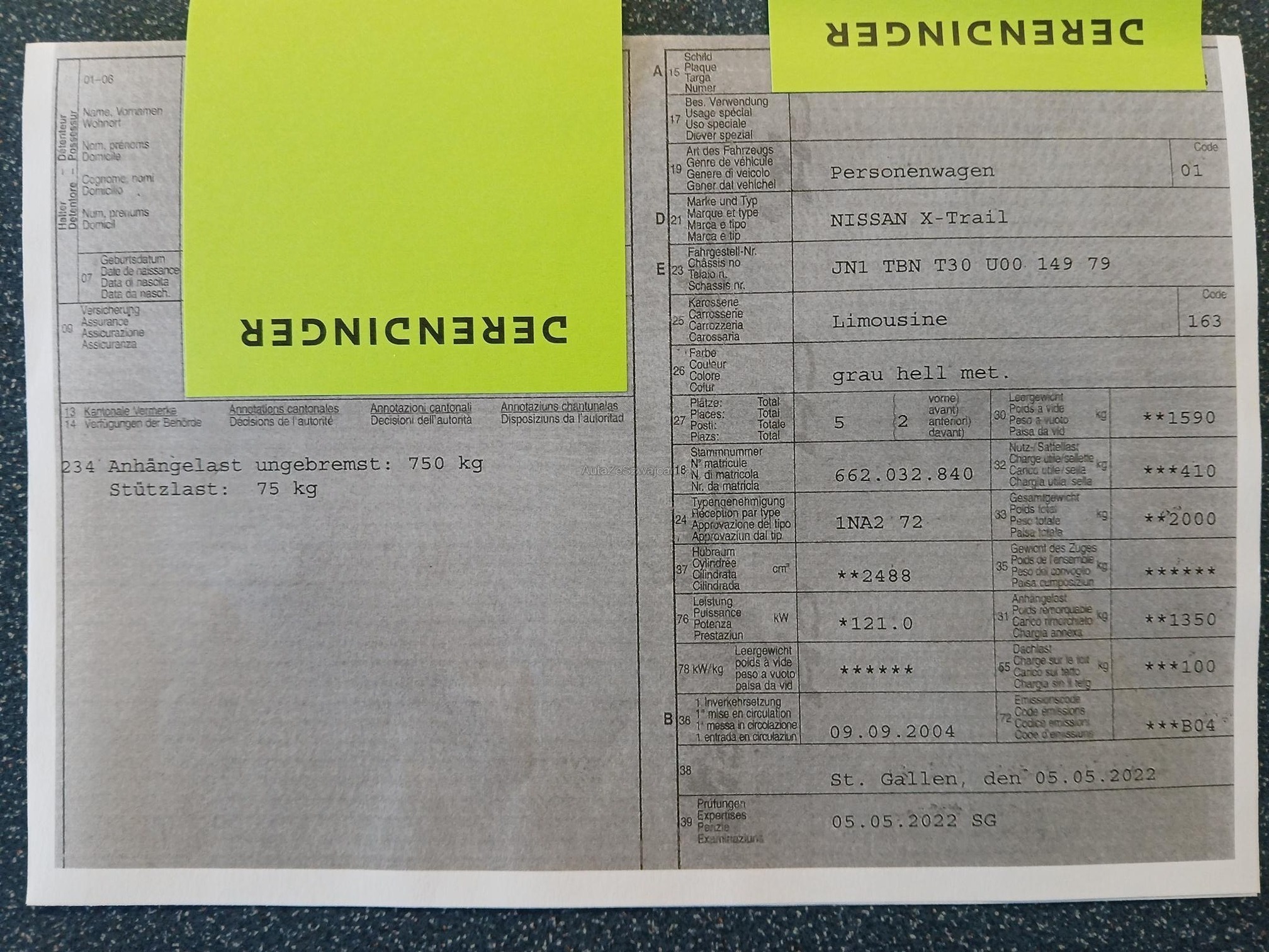 | Kommentar | - 8fach bereift, Winterreifen noch i.O., Sommerreifen auf Alufelgen noch sehr gut (neuwertig!) - TOP-Ausstattung (elektrische Sitze, Sitzheizung, Leder, etc...) - diverse Kratzer und Rost, siehe Fotos Es wurde keine technische oder mechanische Prüfung durchgeführt. Fahrzeugkauf auf eigenes Risiko, ab Platz ohne Garantie und Nachwährschaft. Die Gewährleistung für Sachmängel wird wegbedungen. Wandelung und Minderung sind ausgeschlossen! |