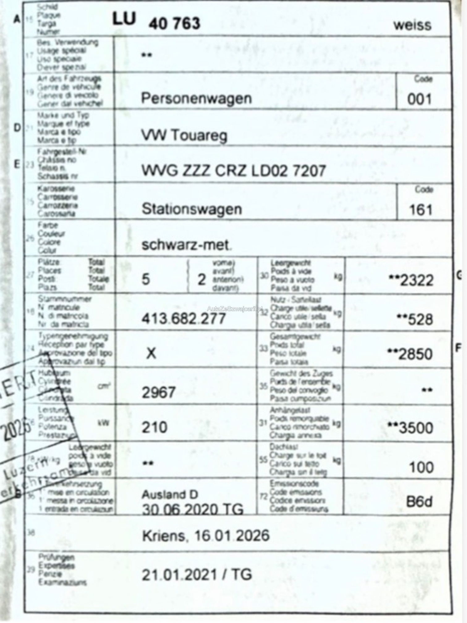 | Kommentar | *Das Fahrzeug hat vor knapp einem Jahr neue Bremsen an der Vorderachse und an der Hinterachse erhalten. Belege sind vorhanden. Optionale Ausstattung Blackline Ambiente Pack/ Beleuchtung Anhängevorrichtung elektrisch abklappbar Diebstahlwarnanlage Plus Easy Open Komfortöffnung der Heckklappe Klimaanlage Climatronic 4-Zonen Lackierung Metallic oder Perleffekt Luftfederung + Allradlenkung Ohne Modellbezeichnung Pack Licht und Sicht/ Memory Aussenspiegel automatisch abblendbar/ Fahrerseite Aussenspiegel mit Memory elektr. anklappbar Pack Memory Premium Lenksäule elektrisch verstellbar mit Memory Vordersitze elektrisch verstellbar mit Memory Panorama-Schiebe-/ Ausstelldach elektrisch Seiten- und Heckscheibe hinten abgedunkelt Standheizung- / Lüftung mit Fernbedienung Äussere Rücksitze beheizbar Das angebotene Fahrzeug befindet sich in gebrauchtem Zustand. Das Fahrzeug wurde keinem Test unterzogen! Der Käufer überzeugt sich vorgängig selbst vom Zustand des Fahrzeuges. Jede Gewährleistung wird wegbedungen, insbesondere sind Wandelung und Minderung ausgeschlossen. Eine Garantie wird nicht gewährt. |