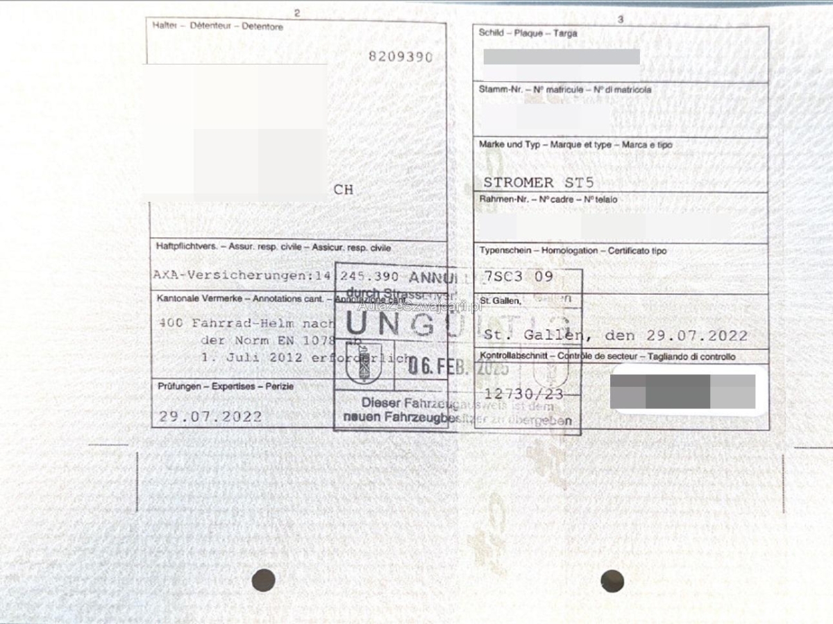 | Fahrzeugausweis | Vorhanden |