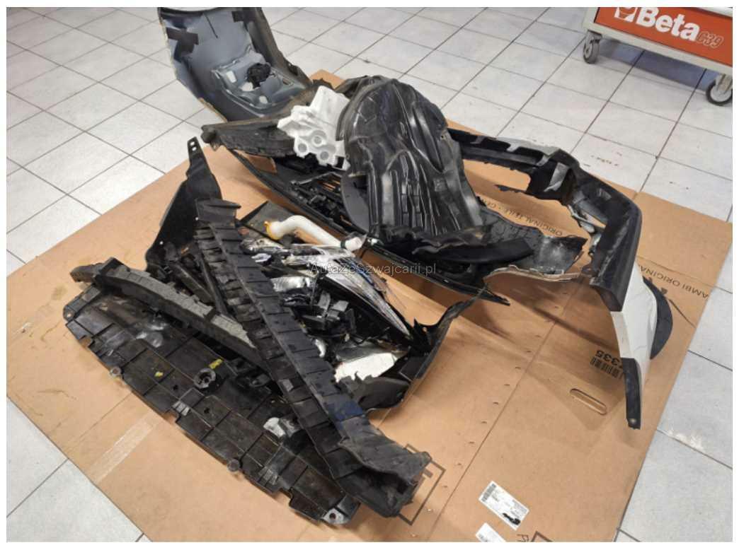 | Beschädigungen | Auspuffanlage, Front, Front links, Front rechts, Frontblech, Klimakühler, Kotflügel links, Kotflügel rechts, Kühler, Kühlgitter, Ladeluftkühler, Längsträger vorne links, Längsträger vorne rechts, Motorhaube, Querträger, Scheinwerfer links, Schlossträger, Stosstange vorne |