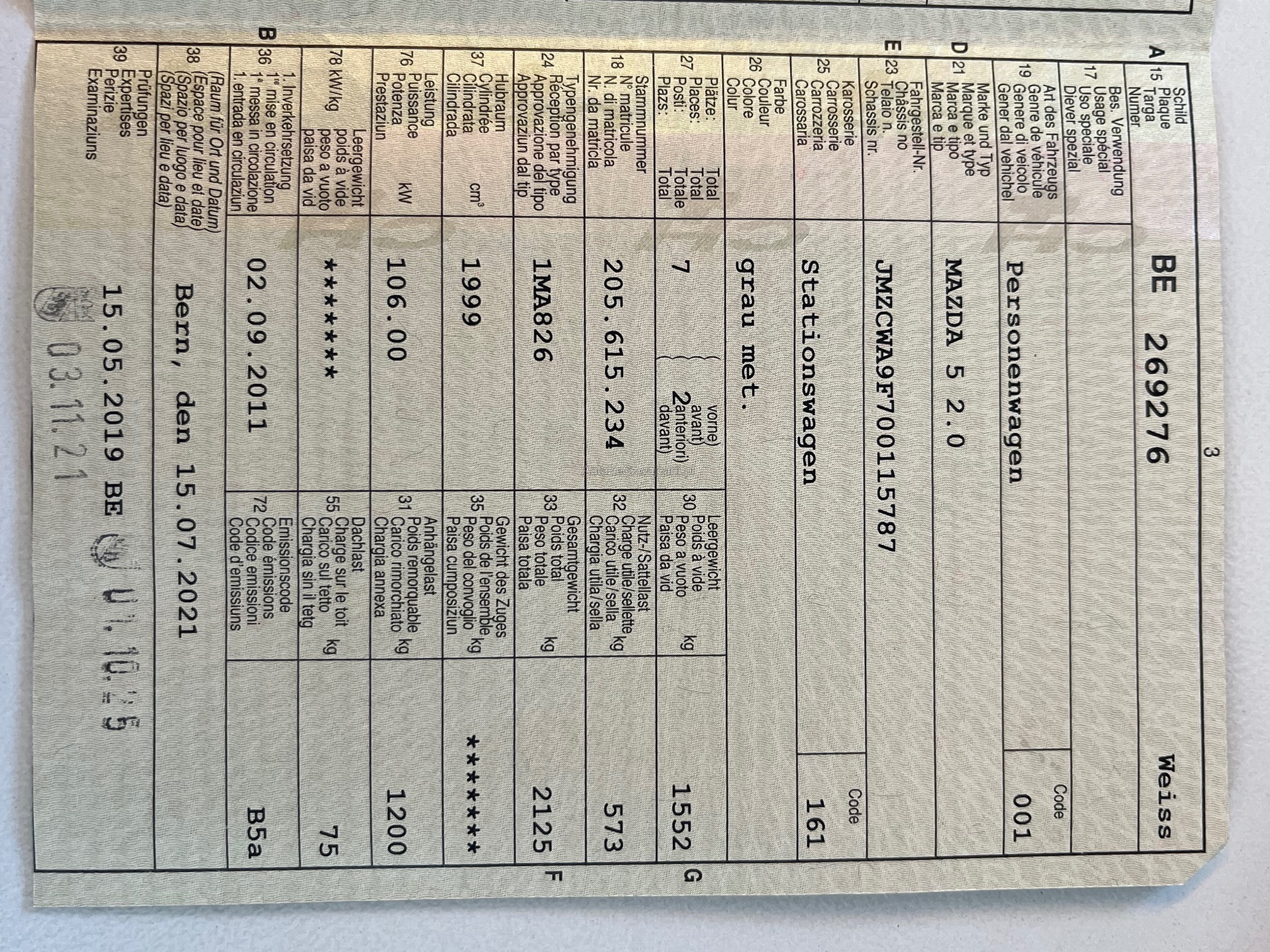 | Kommentar | Benötigt neue Sommerreifen |