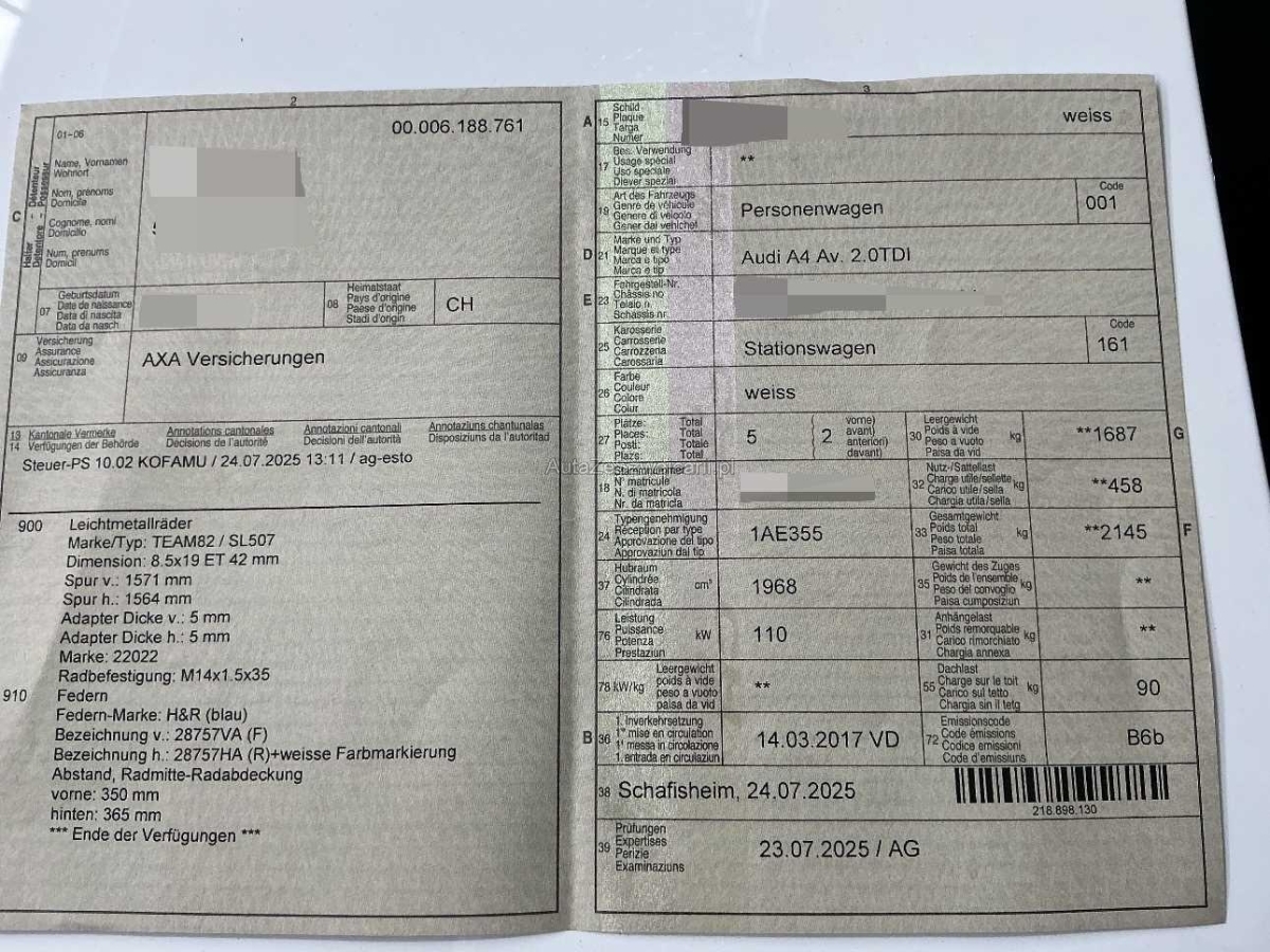 | Fahrzeugausweis | Vorhanden |