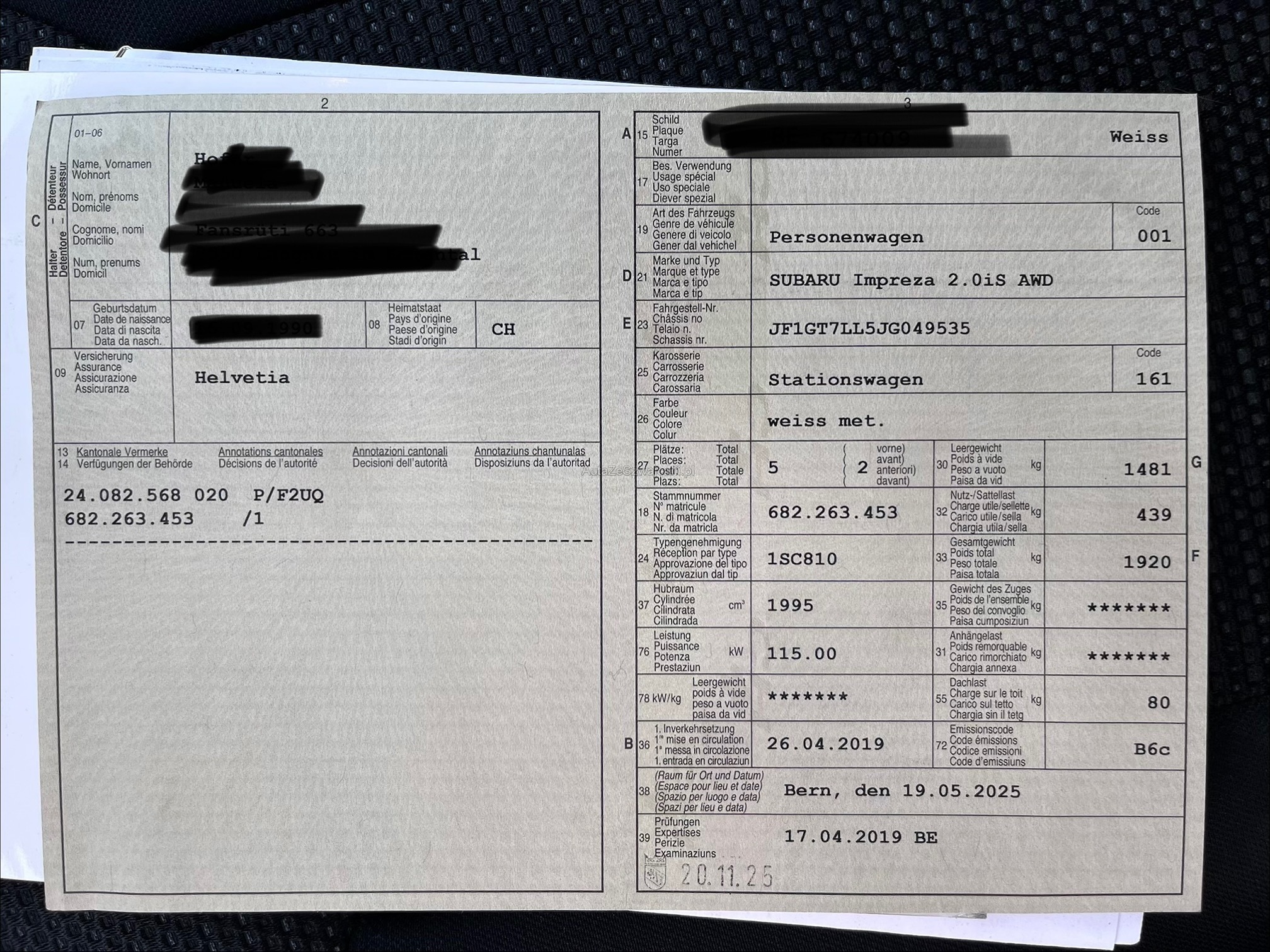 | Kommentar | Sehr gepflegtes Fahrzeug. Klimakompressor defekt, ansonsten kein weiterer Eintauschtest gemacht. Stosstange hi links Lack leicht gerissen. Im Fahrzeug wurde geraucht. Ab Platz ohne Garantie und Nachwährschaft. |