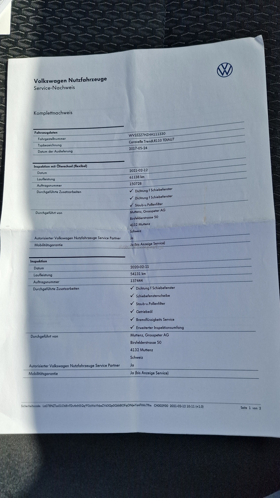 | Kommentar | Ohne Modellbezeichnung Vorbereitung für Anhängevorrichtung (ohne 13-polige Steckdose) Reserverad mit Stahlfelge Starlight blue metallic (LT5U) Doppel-Beifahrersitz im Fahrerhaus 2-sitzige Bank und Einzelsitz rechts in 1. Sitzreihe im Fahrgastraum Armlehnen für Fahrersitz Umfeldbeobachtungssystem "Front Assist" mit City-Notbremsfunktion Schmutzfänger vorne und hinten SD-Karte (Europa) Rückfahrkamera und Ultraschall-Einparkhilfe vorne und hinten 2 Schlüssel mit Funkfernbedienung, 1 Schlüssel starr Mobiltelefon-Schnittstelle und WLAN-Schnittstelle Vorbereitung Unfalldatenspeicher Zusätzliche Steckdose im Armaturenbrett Servoschliessung Schiebetür rechts Zuziehhilfe Hecktüre Stoff "Kutamo" schwarzMoonrock Erhöhtes Gesamtgewicht 3200 kg Dunkel eingefärbte Fenster im Fahrgastraum Car-Net "Guide & Inform" Laufzeit 3 Jahre Radio-Navigation "Discover Media" mit 6,33" Touchscreen, USB Schnittstelle und 8 Lautsprechern Klimaanlage "Climatronic" mit Ausströmer vorn und hinten Radvollblenden Fahrersitz höhenverstellbar Entriegelung Heckklappe von innen, elektrisch Schiebefenster links im Fahrgastraum Schiebefenster rechts im Fahrgastraum Automatisch abblendbarer Innenspiegel Lendenwirbelstütze für Fahrersitz Ultraschall-Einparkhilfe vorne und hinten Tagesfahrlicht mit Assistenzfahrlicht und Coming-Home / Leaving-Home Scheibenwischer mit Regensensor 2. Schlüssel mit Funkfernbedienung Geschwindigkeitsregelanlage Nebelscheinwerfer mit Abbiegelicht Beheizbare Scheibenwaschdüsen Bluetooth Freisprechanlage Sondermodell Liberty Gummiboden im Fahrerhaus und Fahrgastraum 4-stufiges Heiz- und Frischluftgebläse mit Umluftschaltung, Staub- und Pollenfilter Stossstangen grau Motor/Start-Stopp 3er Sitzbank in der 2. Sitzreihe Zentralverriegelung mit Funkfernbedienung und Innenbetätigung Stahlfelgen 6x16 2-sitzige Bank mit Armlehne in 1. Sitzreihe im Fahrgastraum Berganfahrassistent Heckklappe mit beheizbarem Fenster und Heckscheibenwischer Schiebetüre rechts im Lade-/Fahrgastraum Multikollisionsbremse 2 Einzelsitze im Fahrerhaus Licht & Sicht Paket Zentralverriegelung mit Funkfernbedienung und Innenbetätigung Leder-Multifunktionslenkrad mit Bedienung für Radio und Telefon Elektrikpaket 1 4-Anzeigen Kombiinstrument und Multifunktionsanzeige mit monochrom-TFT-Display und Müdigkeitserkennung Radio "Composition Audio" mit TFT-Display (monochrom) und 2 Lautsprechern Klimaanlage halbautomatisch mit Ausströmer im Fahrerhaus und Heizungsausströmer im Fahrgastraum Display vom Radio reagiert nicht. |