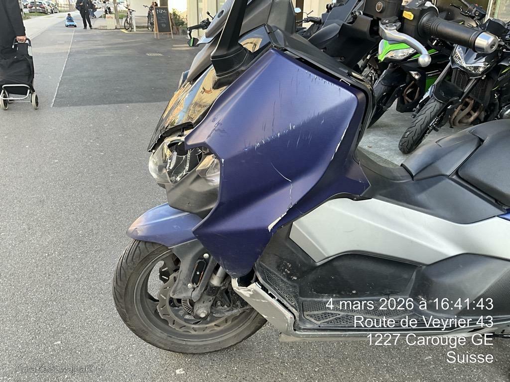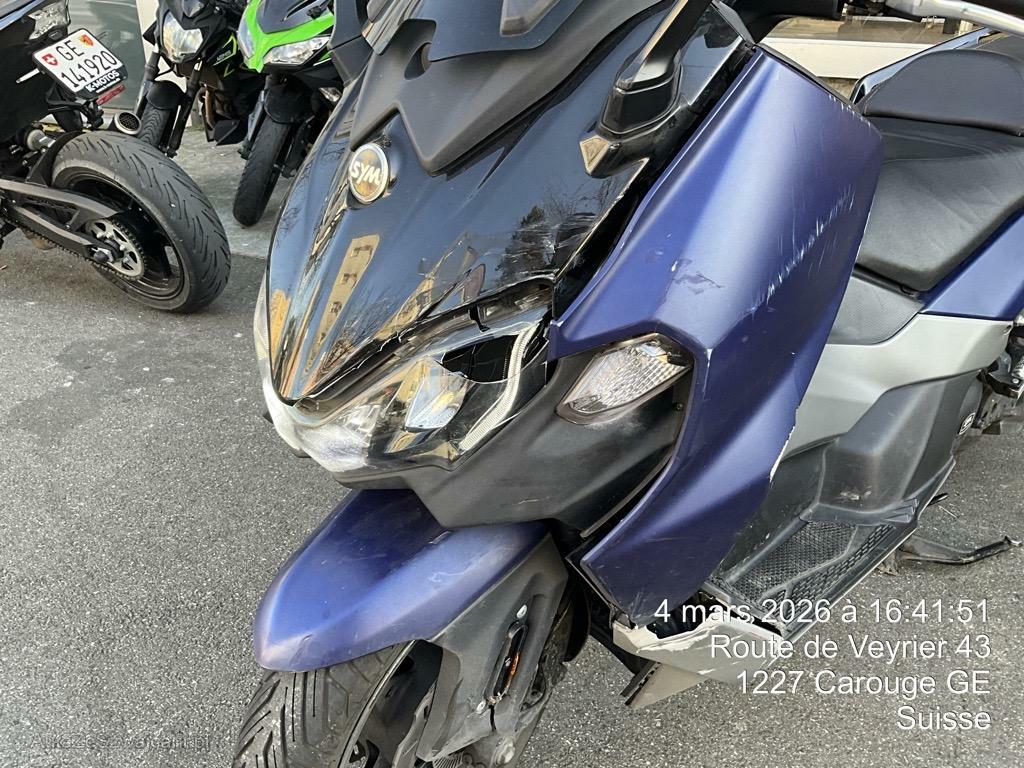 | Schadensbeschreibung | Choc avant et chute latéral gauche. Fourche déformée. Optique avant, face avant, carénages gauches cassés / Dommages préexistants: traces d'utilisation |