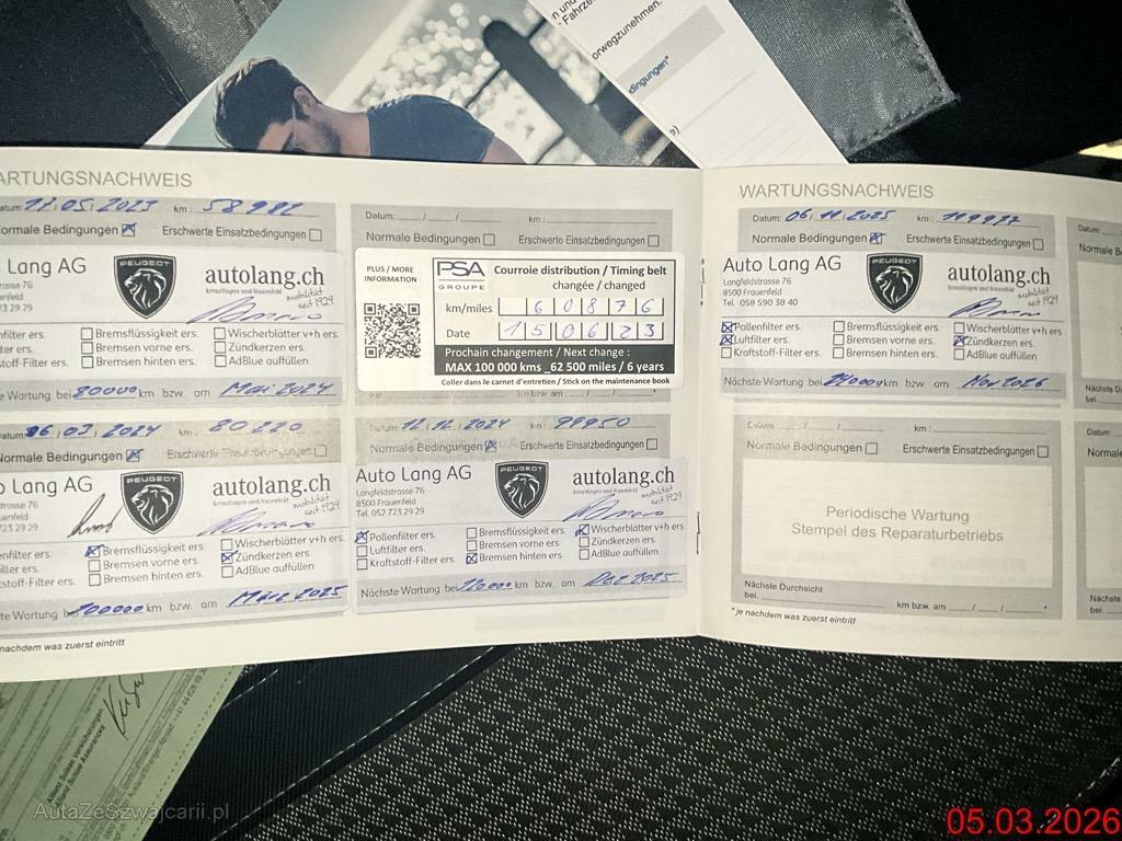 | Sonderausstattung | Paket: Paket Drive Assist plus (Assist: Automatische Sicherheitsbremse (Active Safety Brake) mit Distance Alert (Kollisionswarner), Assist: Erkennung und Empfehlung von Geschwindigkeitstafeln, Assist: Adaptiver Geschwindigkeitsregler mit Stop/Go, Assist: Lane Positionning Assist, Assist: Aufmerksamkeitsassistent über Kamera, Assist: Aktiver Warnhinweis auf unbeabsichtigtes Überfahren von Linie und Strassenrand, Assist: Active Safety Brake e (bei Nacht und Radfahrern) mit Video und Radar), Dach schwarz lackiert, Sitze: Vordersitze heizbar, Media: Vernetzte 3D-Navigation mit 10-Zoll-Touchscreen und 4-USB-Anschlüsse (2 vorne und 2 hinten) - Europäisches Kartenmaterial mit automatischer, dauerhafterVerbindung zu den vernetzten Navigationsdiensten TomTom® (TomTom® Traffic, Praftstoffpreise, Parkplätze, Wetterbericht, lokale Suche) mit DAB-Funktion (digitales Radio) dank in Fahrzeug integrierter SIM-Karte (3-Jahres-Abonnement inklusive) - SOS & Assistenz: Automatischer oder manueller Notruf über SOS-Taste und direkte Verbindung mit PEUGEOT Assistance (täglich rund um die Uhr), Polster: Stoff-/Kunstleder-Ausstattung, Keyless Entry / -Start, Panoramaglasdach mit Sonnenrollo |