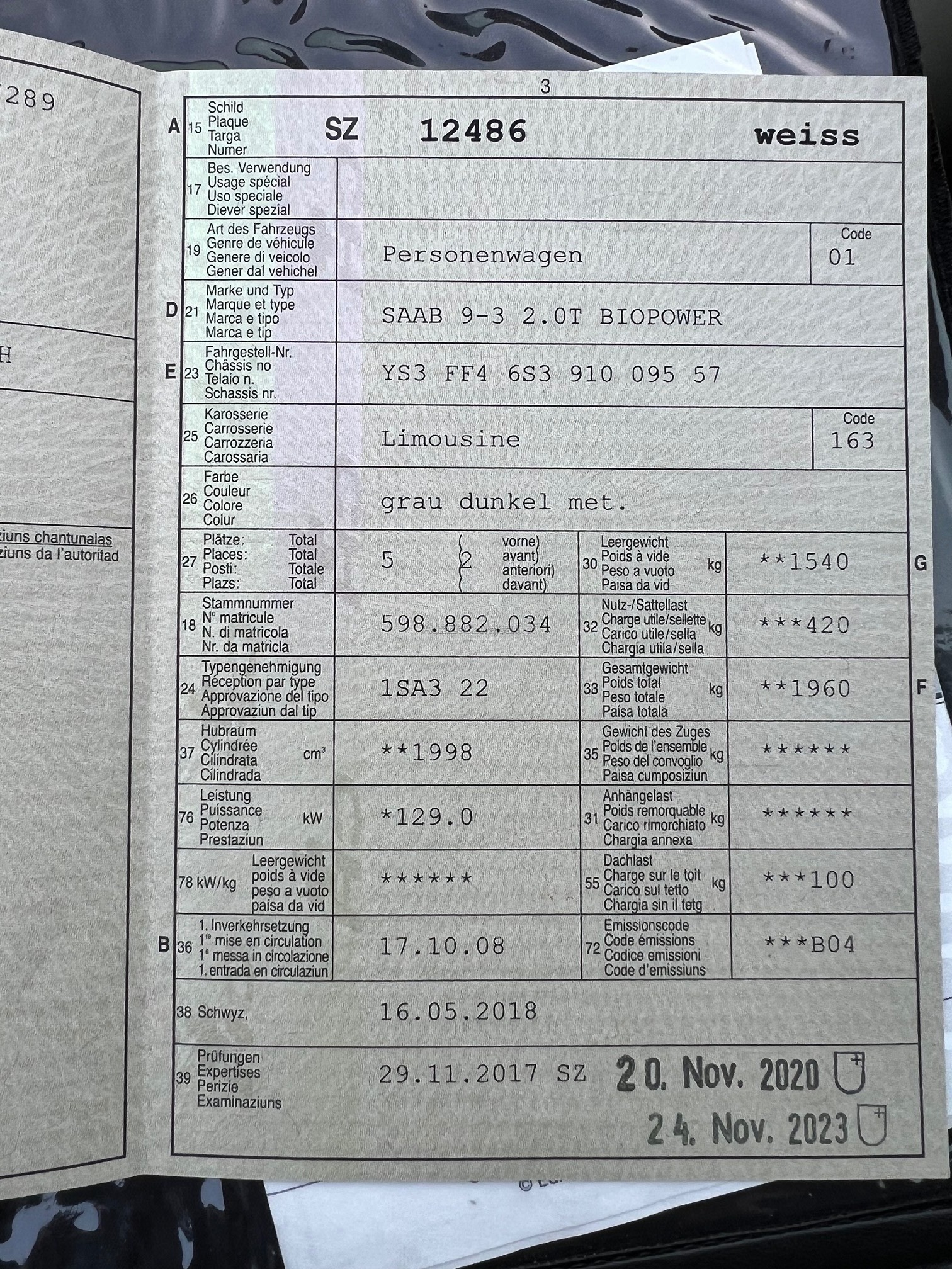 | VIN | YS3XXX |
