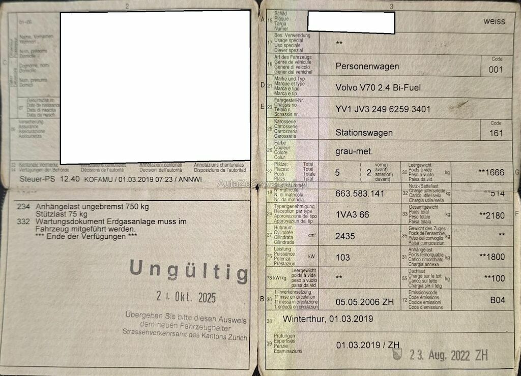 | Typ | V70 2.4 20V 140 Momentum Bi-Fuel |