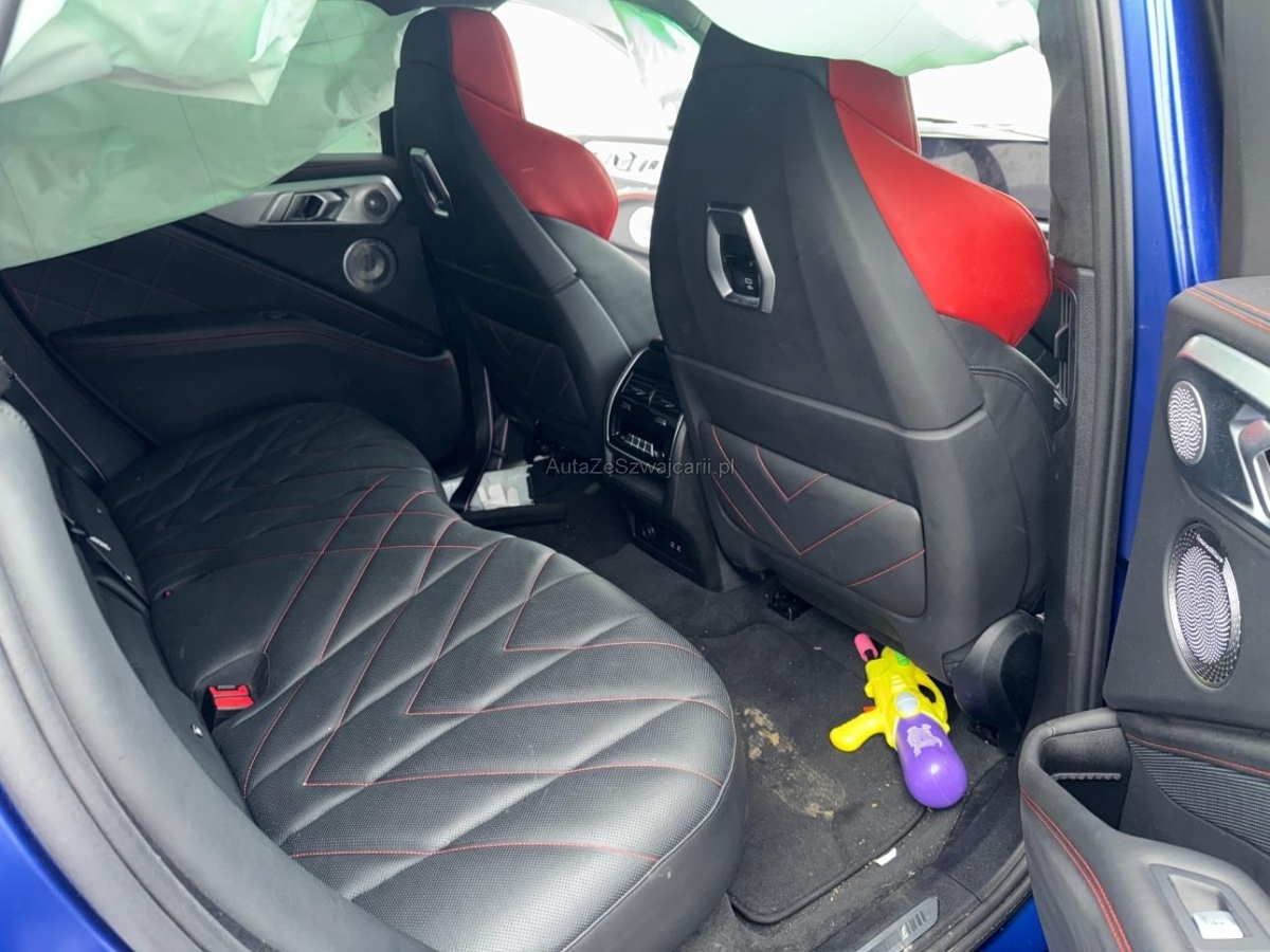 | Serienausstattung | Räder: Radschraubensicherung, Lenkrad: Lenkrad längs- und höhenverstellbar, Airbag: Frontairbagsystem für Fahrer und Beifahrer, Travel & Comfort System - 2×USB Typ C, Laden mit 3 A in der Rückenlehne der 1. Sitzreihe - 2×Vorbereitungen Multifunktionshalter in der Rückenlehne der 1. Sitzreihe, Licht: Heimleuchten, M Sicherheitsgurte - beinhaltet Sicherheitsgurte schwarz mit Farbcodierung in M Farben für erste und zweite Sitzreihe, Sitze: Kindersitzbefestigung ISOFIX, äussere Fondsitze, Bremsscheiben vorne, innenbelüftet, BMW IconicSounds Electric - steigert die Fahrfreude durch ein markantes akustisches Antriebsfeedback - Inszenierung des Antriebsounds über CID aktivierbar - Abstufung über die FES Modi: Sport: deutliches Lastfeedback Comfort: ausgewogener Akustikkomfort mit leichtem Lastfeedback Eco-Pro: hoher Akustikkomfort ohne zusätzliche Inszenierung, Media: DAB+ Tuner, Bremsscheiben hinten, innenbelüftet, Airbag: Kopfairbag 1. und 2. Sitzreihe, BMW Garantie: Repair Inclusive 4 Jahre oder 200'000 km - es gilt das zuerst Erreichte., Active Protection Sicherheitspaket zur Einleitung von Schutzmassnahmen für die Insassen in drohenden Unfallsituationen: - Reversible Gurtstraffung - Automatisches Schliessen der Fenster, Komfortzugang Beinhaltet folgende Funktionen: - Schlüsselloser Zugang zum Fahrzeug - Welcome Inszenierung bei Annäherung ans Fahrzeug - Automatische Entriegelung bei Annäherung ans Fahrzeug - Automatische Verriegelung beim Entfernen vom Fahrzeug - Berührungsloses Öffnen und Schliessen der Heckklappe Beinhaltet den BMW Digital Key mit folgenden Funktionen: - Ver- und Entriegeln sowie Starten des Fahrzeugs unter Verwendung eines kompatiblen Smartphon., Armauflage vorn und hinten, in Türverkleidung integriert, Lenkrad: Schaltwippen am Lenkrad, Sonnenschutzverglasung Reduziert bei Sonneneinstrahlung die Aufheizung des Fahrzeuginnenraums. Stärker eingefärbte Verglasung im hinteren Fahrzeugbereich bewirkt eine stärkere Absorption des Sonnenlichtes für diese Flächen., Räder: 22" M Leichtmetallräder Doppelspeiche 922 M Bicolor mit Mischbereifung Vorn: 10 J×22/Bereifung 275/40 R 22 Hinten: 11 J×22/Bereifung 315/35 R 22, Einstiegsleisten beleuchtet mit Schriftzug, Fahrwerk: Adaptives M Fahrwerk Professional - Aktive Wankstabilisierung für ein Höchstmass an Fahrstabilität und Fahrdynamik - inklusive Integralaktivlenkung, 3-Punkt-Sicherheitsgurte auf allen Plätzen, Dekor: Interieurleisten Carbon Fibre M Signatur, Türen: Automatische Heckklappenbetätigung - Elektrisch öffnende/schliessende Heckklappe - Bedienungstasten in Türverkleidung Fahrerseite und Heckklappe - Heckklappenschloss, elektrisch mit Verriegelungsüberwachung - Öffnen/ Schließen mit Fernbedienungsschlüssel möglich, Licht: Innenbeleuchtung beinhaltet: - Leselicht vorne (Fahrer/Beifahrer) - Leselicht hinten (mittig) - Make-Up-Spiegel-Leuchten (Fahrer/Beifahrer) - Handschuhkasten innen - Türausstiegsleuchte vorne (links / rechts) - Fußraumleuchte vorne (links / rechts) - Gepäckraum Lichtband (links / rechts), Sitze: M Multifunktionssitze für Fahrer und Beifahrer Beinhaltet: - für Fahrer und Beifahrer - beinhaltet die Funktionen der Sitzverstellung, elektrisch mit Memory (Memoryfunktion auch für Beifahrersitz) und Lordosenstütze für Fahrer und Beifahrer - elektrische Einstellung für oberes Lehnensegment, Lehnenbreite und Oberschenkelauflage - platzierte Perforation inklusive XM spezifischem Nahtbild - beleuchtetes M Logo auf der Kopfstütze, Licht: Fernlicht-Assistent - Automatisches Ein- und Ausschalten des Fernlichtes abhängig von der Verkehrssituation - Steuerung über Sensor an der Vorderseite des Innenspiegels, Ladekabel (Mode 3) für öffentliches Laden - AC-Laden an öffentlichen Ladesäulen für Typ2-Märkte - 11 kW (3-phasig) - Kabellänge: 5m - Aufbewahrung in Tasche im Gepäckraum, Ambientes Licht mit Ambiente-Lichtdesigns - LED-Auflicht (Wasserfallbeleuchtung) - Ambiente Türtaschenbeleuchtung - Ambiente Centerstackbeleuchtung (Centerstack Ablagefach Beleuchtung) - Ambiente Fußraumleuchte vorne und hinten - Ambiente Instrumententafelbeleuchtung - Ambiente Türspiegelbeleuchtung - Konturenbeleuchtung Türverkleidung vorne und hinten - umfasst 6 vordefinierte wählbare Lichtdesigns in verschiedenen Farben mit Kontur- und Ambientebeleuchtung - zusätzlich inszeniert der Welcome Light, Assist: Akustischer Fussgängerschutz - Künstlich generierter Sound beim elektrischen Fahren zum Schutz anderer Verkehrsteilnehmer (akustische Wahrnehmung). Beim Neu-Start immer aktiv (Default On)., BMW ID Mit der BMW ID wird der Fahrer auf dem Display persönlich begrüßt und alle personalisierten Funktionen stehen zur Verfügung. Bei Verknüpfung der BMW ID mit dem Schlüssel wird die BMW ID bereits mit Entriegelung automatisch aktiviert. Die BMW ID ermöglicht es personalisierte Einstellungen zu speichern und auf andere BMW Fahrzeuge zu übertragen. Für Fahrer im Gastprofil sind Funktionen, die persönliche Daten verarbeiten, nicht verfügbar., Parkbremse, elektromechanisch, Paket: M Aerodynamicpaket, AC-Laden - Für ein besonders schnelles Aufladen an AC-Ladestationen ist serienmäßig fahrzeugseitig ein Ladegerät mit einer maximalen Ladeleistung von bis zu 11 kW verbaut., Assist: Geschwindigkeitsregelung mit Bremsfunktion, Schliessystem mit Zentralverriegelung inklusive 2 Fernbedienungen mit integriertem Schlüssel, Türen: Soft-Close-Automatik für Türen - Ermöglicht ein bequemes und sicheres Schliessen der Türen ohne viel Kraftaufwand und störende Zuschlaggeräusche. Versehentlich nicht richtig geschlossene Türen werden automatisch zugezogen., Licht: Heckleuchten in LED-Technik, Airbag: Seitenairbag für Fahrer und Beifahrer, Assist: Parking Assistant Plus, DC-Laden, Polster: BMW Individual Leder Merino mit Exklusivumfängen, Getränkehalter, temperiert - Getränkehalter beheizt und gekühlt in der Mittelkonsole - Einzeln aktivierbar über Taste