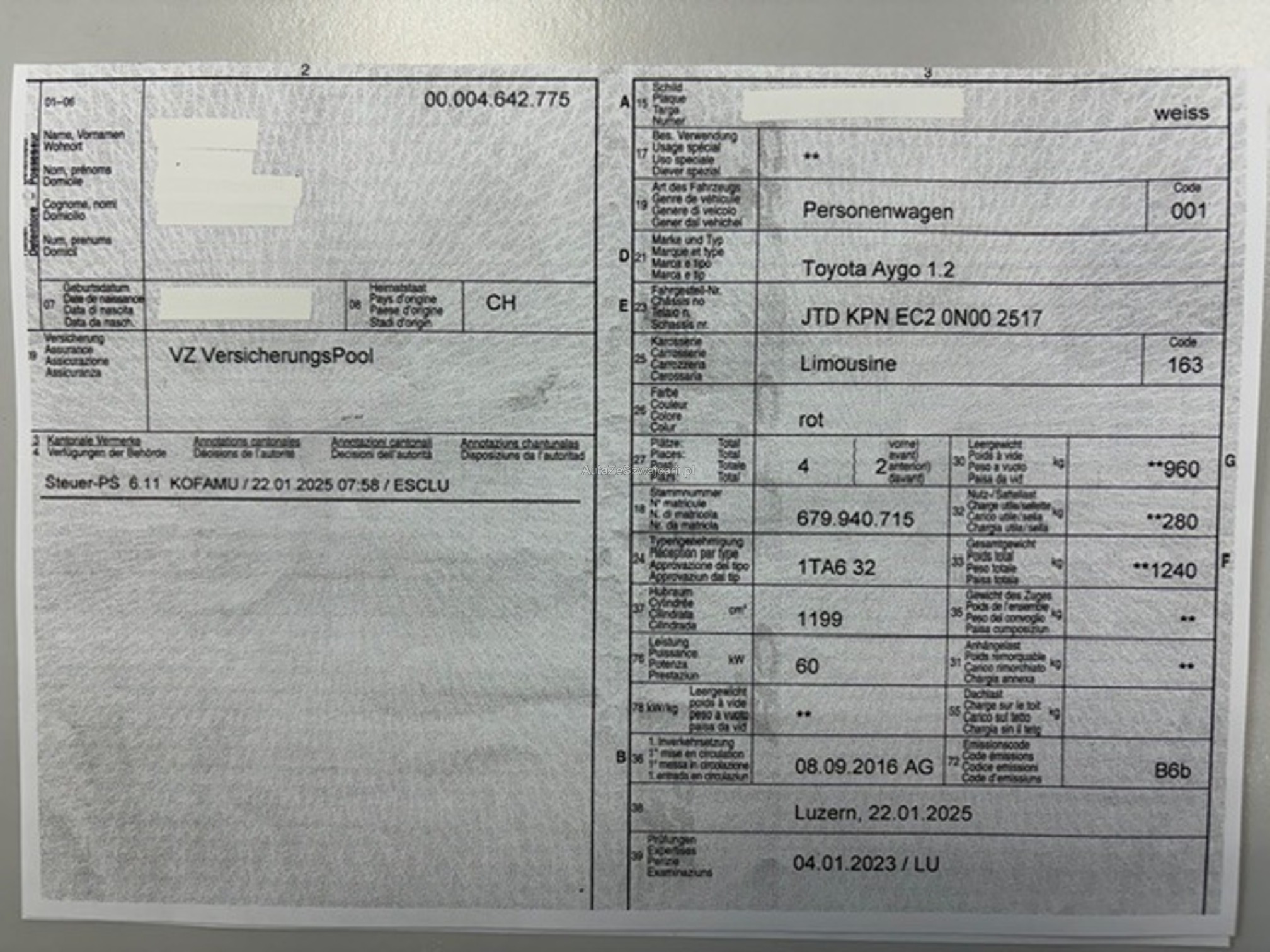 | Kommentar | Die Motorhaube und die Kotflügel vorne haben leichte Kratzspuren |
