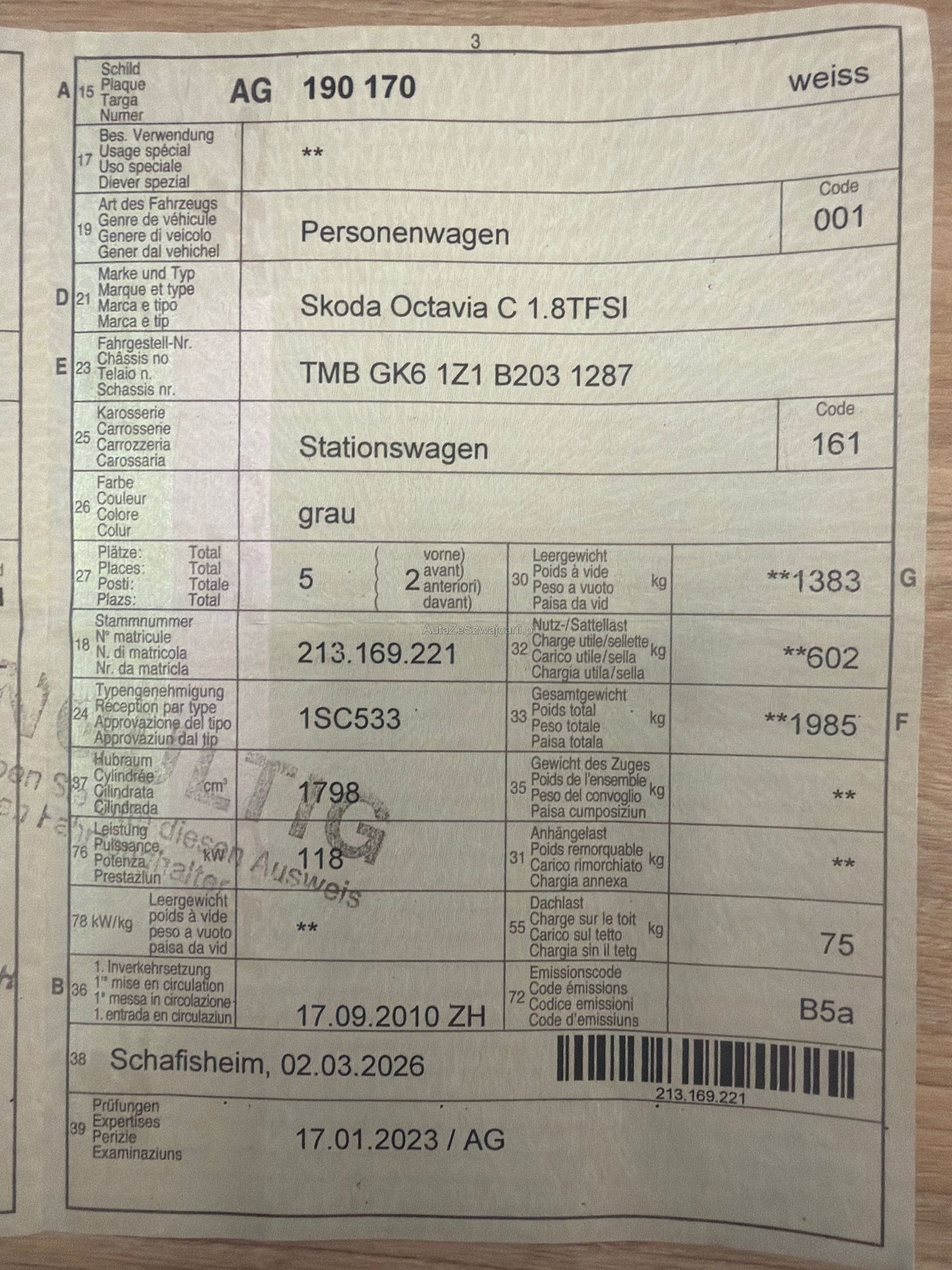 | Letzte Inspektion | 2023-01-01 |