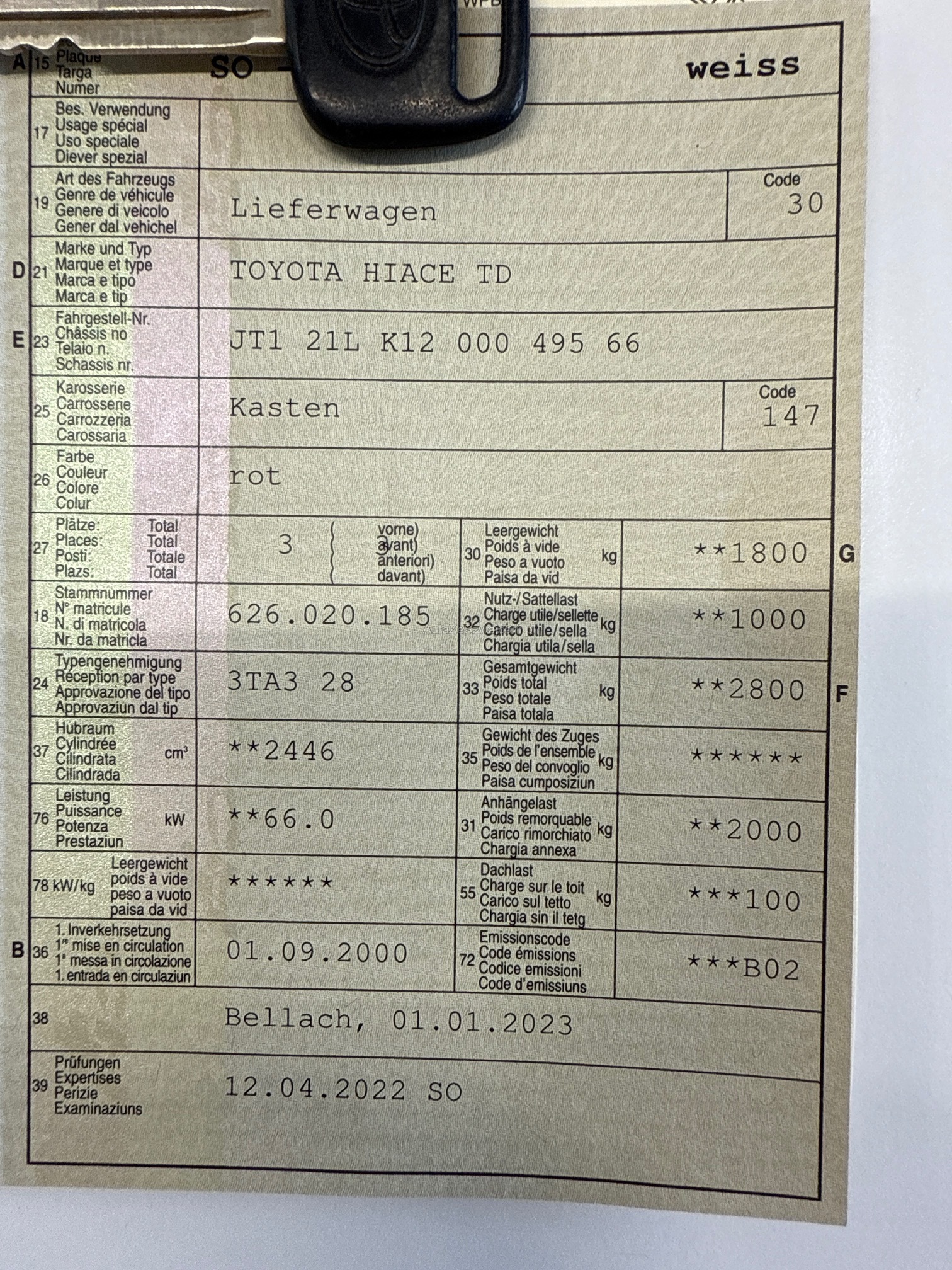 | Kommentar | An diesem Fahrzeug wurde kein Werkstatttest / Probefahrt durchgeführt. Schiebetür links lässt sich nicht richtig öffnen. |