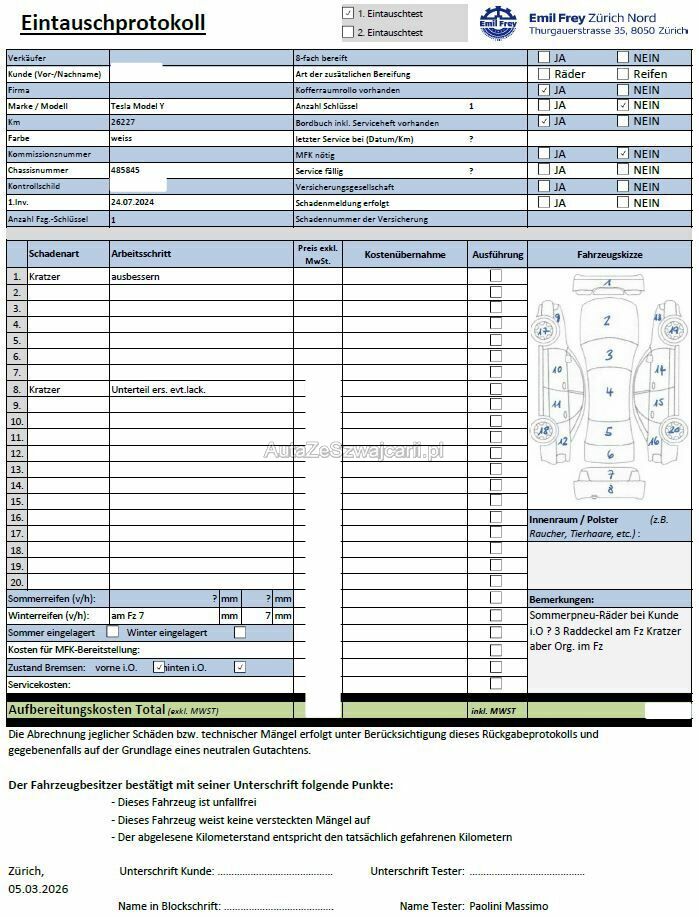 | Information | Keine technische Prüfung (Werkstatttest) vorgenommen Diverse Schäden an Karosserie/Lack. Fahrzeug ab Platz, ohne Garantie und Aufbereitung. DPF/FAP Filter nicht kontrolliert Keine Gewähr auf die Angaben der Sonder- und Serienausstattung / keine mechanische Prüfung. Fahrzeug wurde unzerlegt expertisiert / keine Haftung für allfällige, nach Demontage bekanntwerdenden Mängel. Fahrzeugbereifung und Ausstattung gemäss Fotos / Fahrzeugkauf auf eigenes Risiko ab Platz ohne Nachwährschaft. - Div. Kratzer - Zerkratzte Raddeckel - Neue originale Raddeckel im Frzg - Anhängerkupplung im Frzg |