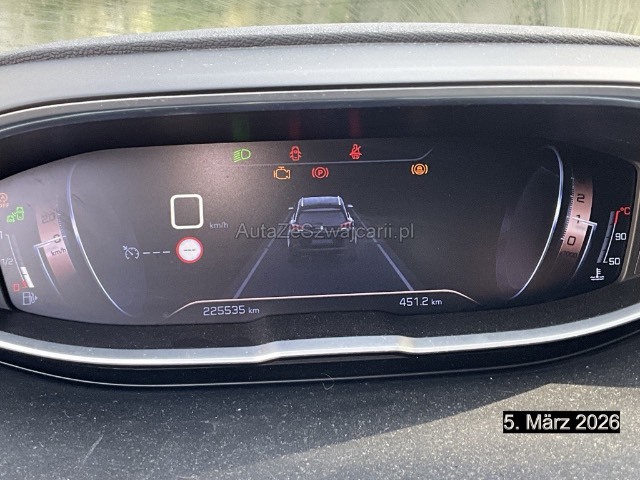 | Serienausstattung | Drehzahlmesser, Gurtkontrolle, Bremsassistent (BAS), Digital Uhr, Bordcomputer, Licht: LED-Tagfahrlicht, Höhenverstellbare Gurten vorne, Park Distance Control vorne und hinten, Automatisches Einschalten der Abblendlichter, Airbag: Fahrer und Beifahrer, Gangempfehlung, Regensensor für Scheibenwischer vorne, Head-Up Display, Assist: Verkehrsschild-Erkennungssystem, Media: USB-Anschluss, Navigationssystem mit Sprachsteuerung Peugeot Connect SOS und Assistance, Aussenspiegel rechts und links beheizbar und elektrisch verstellbar, Elektronische Parkbremse, Airbag: Window-Kopfairbags, Dynamische Traktionskontrolle (DTC), Audio MP3-Player, Assist: Spurhalteassistent Lane Assist, Wassertemperaturanzeige, Elektronisches Stabilitäts-Programm (ESP), Kopfstützen vorne höhenverstellbar, Assist: Active Safety Brake, Getriebe: 6-Gang-Getriebe, Radiovorbereitung, Antenne, Entstörung und 6 LS, Zierleisten aussen in Chrom, Katalysator geregelt, Kühlergrill verchromt, Wartungsintervall-Anzeige, 3-Punkt-Sicherheitsgurte auf allen Plätzen, Gurtstraffer vorne, Stopp-/Start-System, Zentralverriegelung mit Fernbedienung, Media: Touchscreen, Assist: Spurhalteassistent,Fernlichtassistent,Verkehrsschilderkennung und Geschwindigkeitsempfehlung, Assist: ABS, EBD, elektronische Bremskraftverteilung, Steckdose 12V, 3x, Klima: 2-Zonen-Klimaautomatik, Sitze: Beifahrersitz höhenverstellbar, Toter-Winkel-Warnsystem, Bluetooth Freisprecheinrichtung, Servolenkung geschwindigkeitsabhängig, Beide Make up-Spiegel beleuchtet, Kindersicherung an den hinteren Türen, Mirror Screen, Aussenspiegel elektrisch anklappbar, ISOFIX Kindersitzvorrichtung, Elektrische Fensterheber vorne + hinten, Licht: Drittes Bremslicht, Ambientebeleuchtung, Tempomat mit Geschwindigkeitsbegrenzer, Fahrersitz mit Lordosenstütze, Berganfahrhilfe, Sitze: Fahrersitz höhenverstellbar, LED Innenlichtpaket, Antennen-Diversity, Handschuhfach, Pollenfilter (Staubfilter), Heckscheibenheizung, Räder: Reifendruck-Kontrollanzeige, Licht: Nebelscheinwerfer, Umfeldbeobachtung Front-Assist, Coming-home-Funktion, Aussenspiegel in Wagenfarbe, Beifahrersitz mit Klapptisch, Aussentemperaturanzeige, Radio, Naturlederlenkrad, Wegfahrsperre elektronisch, Airbag: Seitenairbag für Fahrer und Beifahrer, Abgedunkelte Seiten- und Heckscheibe, Seitenschwellerschutz, Türgriffe aussen in Wagenfarbe, Antriebsschlupfregelung (ASR), Ladeboden variabel, Räder: Leichtmetallfelgen Detroit 18J, Polster: Stoff-/Kunstleder-Ausstattung, Dachreling in Aluminium, Innenspiegel abblendbar |