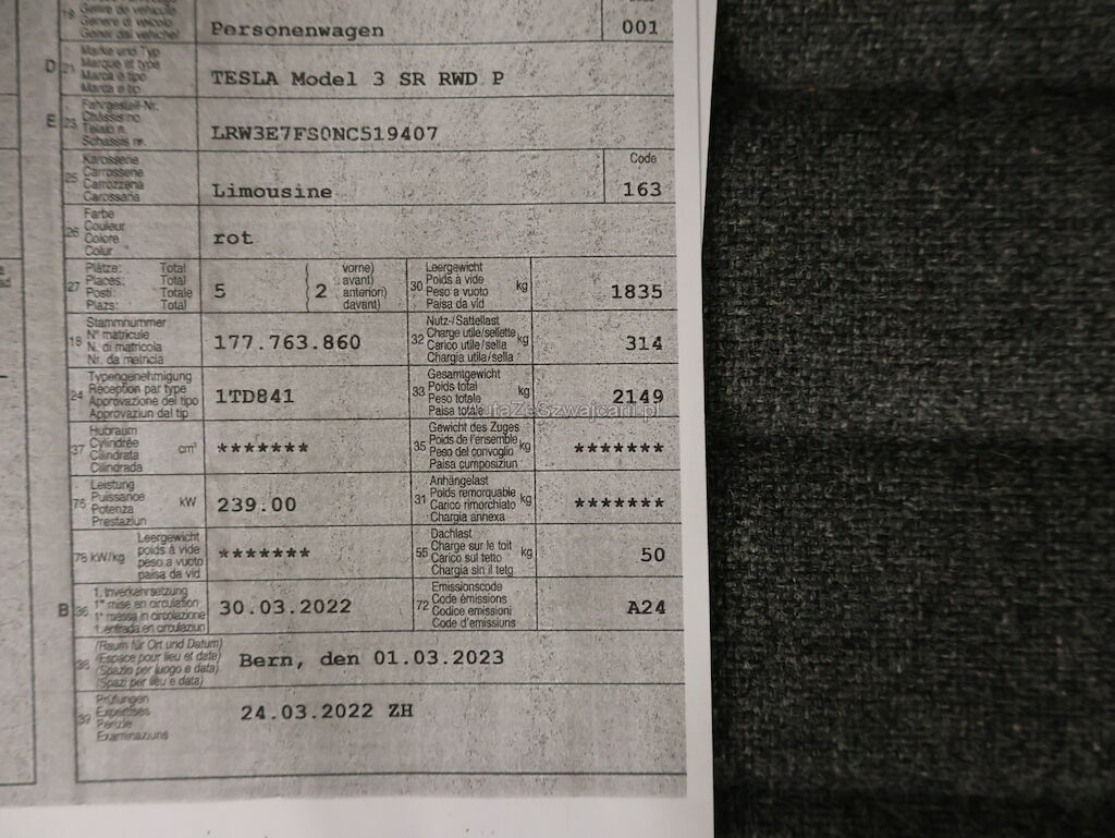 | Typ | Model 3 SR RWD P |