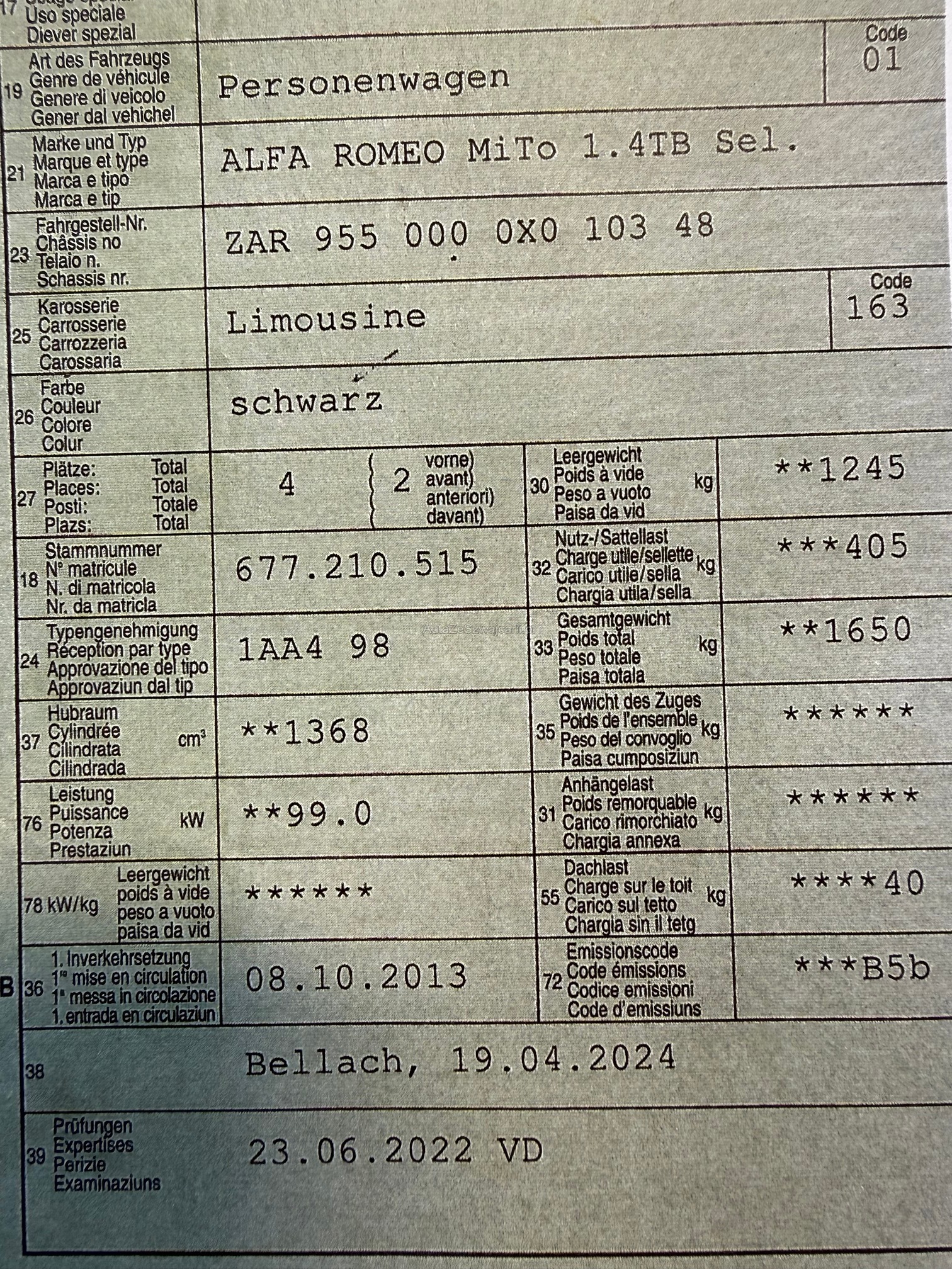 | Kommentar | „Achtung: Das Fahrzeug wurde durch uns nicht geprüft oder getestet.“ Gemäss Kunde Service bei 150'000km in Italien gemacht, Automatikgetriebe bei ca. 135'000 gemacht, Bremsscheiben vorne hinten gemacht. Kann alles vorweisen. Fahrzeug noch im Kundenbesitz |