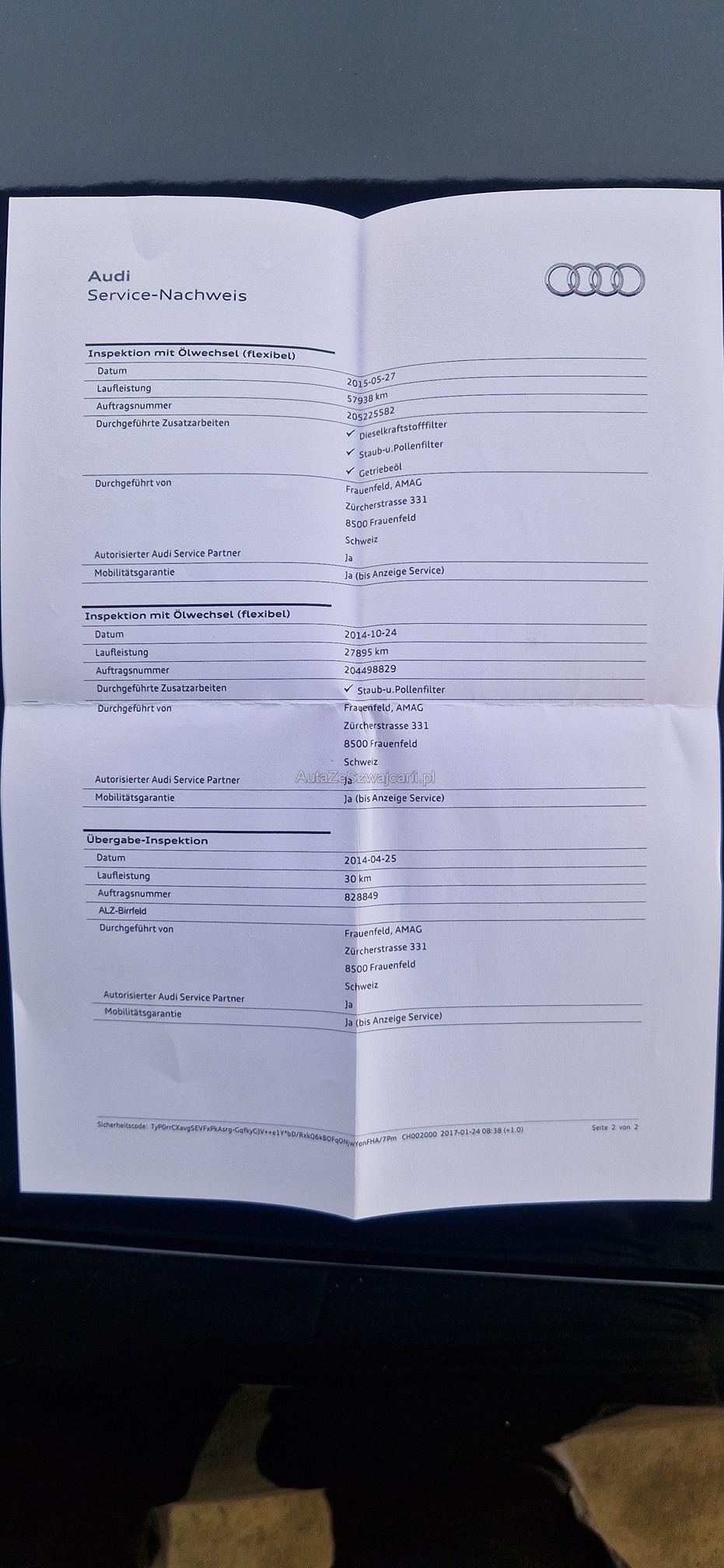 | Kommentar | möglicher Eintausch Das Fahrzeug ist allgemein in einem guten Zustand. Fahrzeug startet nicht mehr, baut zu wenig Raildruck auf. Schraube von einem Injektor war loose, laut Audi Spezialist ist es möglich das man nur alles wieder abdichten muss. Wir selbst haben keine weitere Diagnose gemacht, da der Kunde kein Geld ausgeben möchte und ein Neufahrzeug genommen hat. Die Karosserie und der Innenraum sind in einem schönen Zustand. Am Fahrzeug wurde keine vollumfängliche Prüfung der mechanischen Teile und der Carrosserie durchgeführt! Das Risiko liegt somit vollumfänglich beim Käufer. Um Missverständnisse zu vermeiden kann das Fahrzeug auf Voranmeldung besichtigt & getestet werden. Wird davon bewusst kein Gebrauch gemacht, liegt die Verantwortung beim Käufer. Nach Zuschlag, keine Nachverhandlungen möglich. Ab Platz ohne Garantie, Wandelung und Minderung werden wegbedungen. |