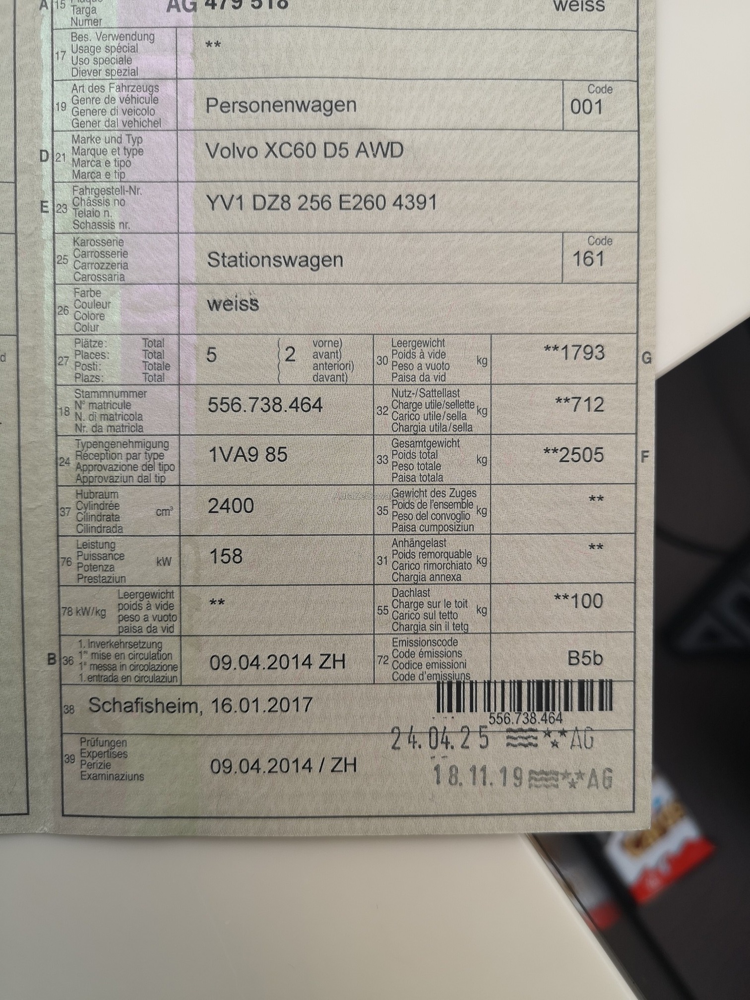 | Kommentar | 2 Sommerreifen sind zu erneuern. Sichtbare Schäden - Fotografisch festgehalten. Für sichtbare und nicht sichtbare Mängel wird nicht gehaftet. Keine Minderung und Wandelung möglich. Keine Nachverhandlungen. Keine Werkstatttest gemacht. Abholung nach Zuschlag innert 5 Tagen - ansonsten Standgebühren (25.- pro Tag) |