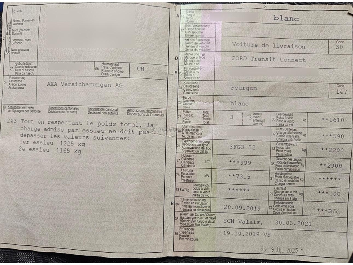 | Fahrzeugausweis | Vorhanden |